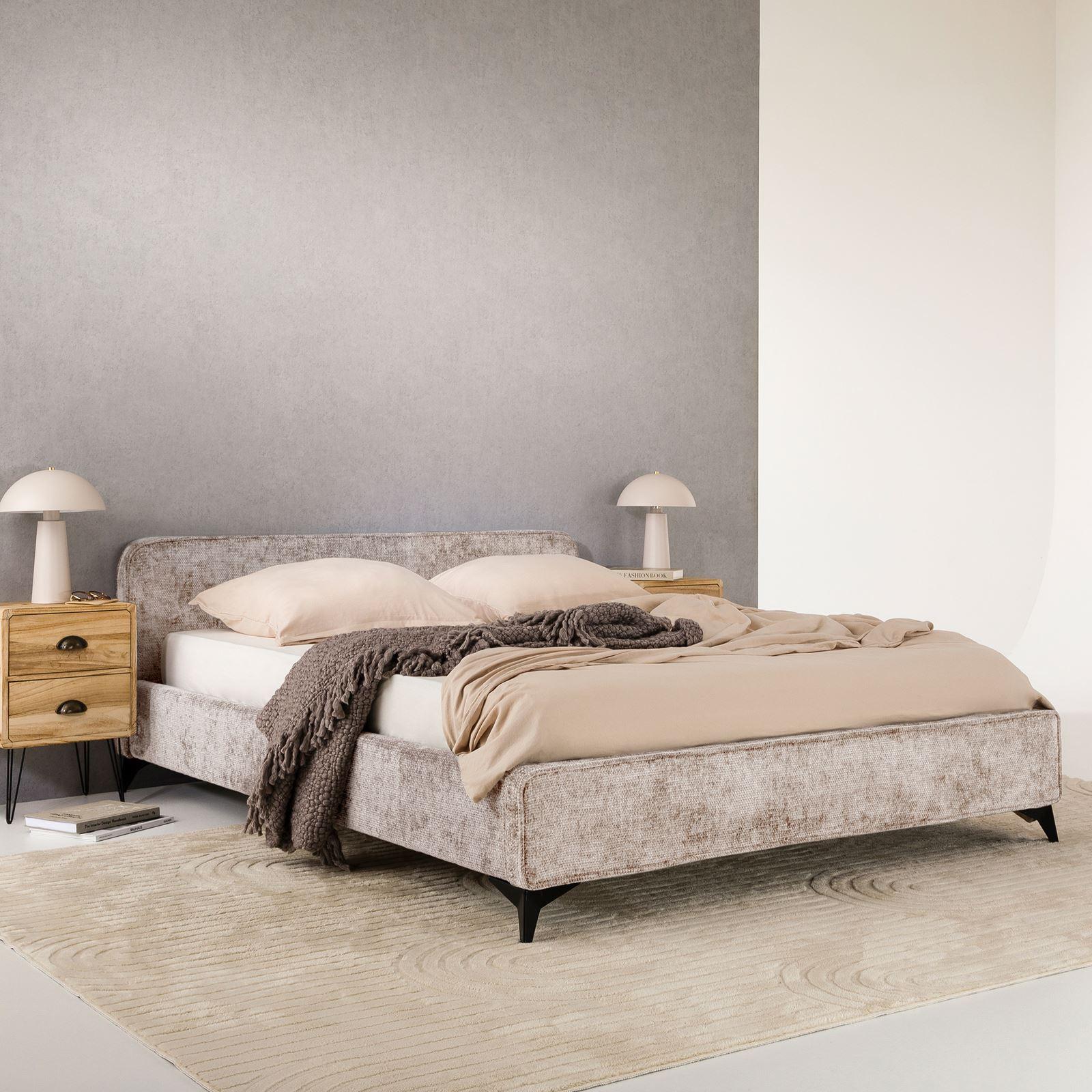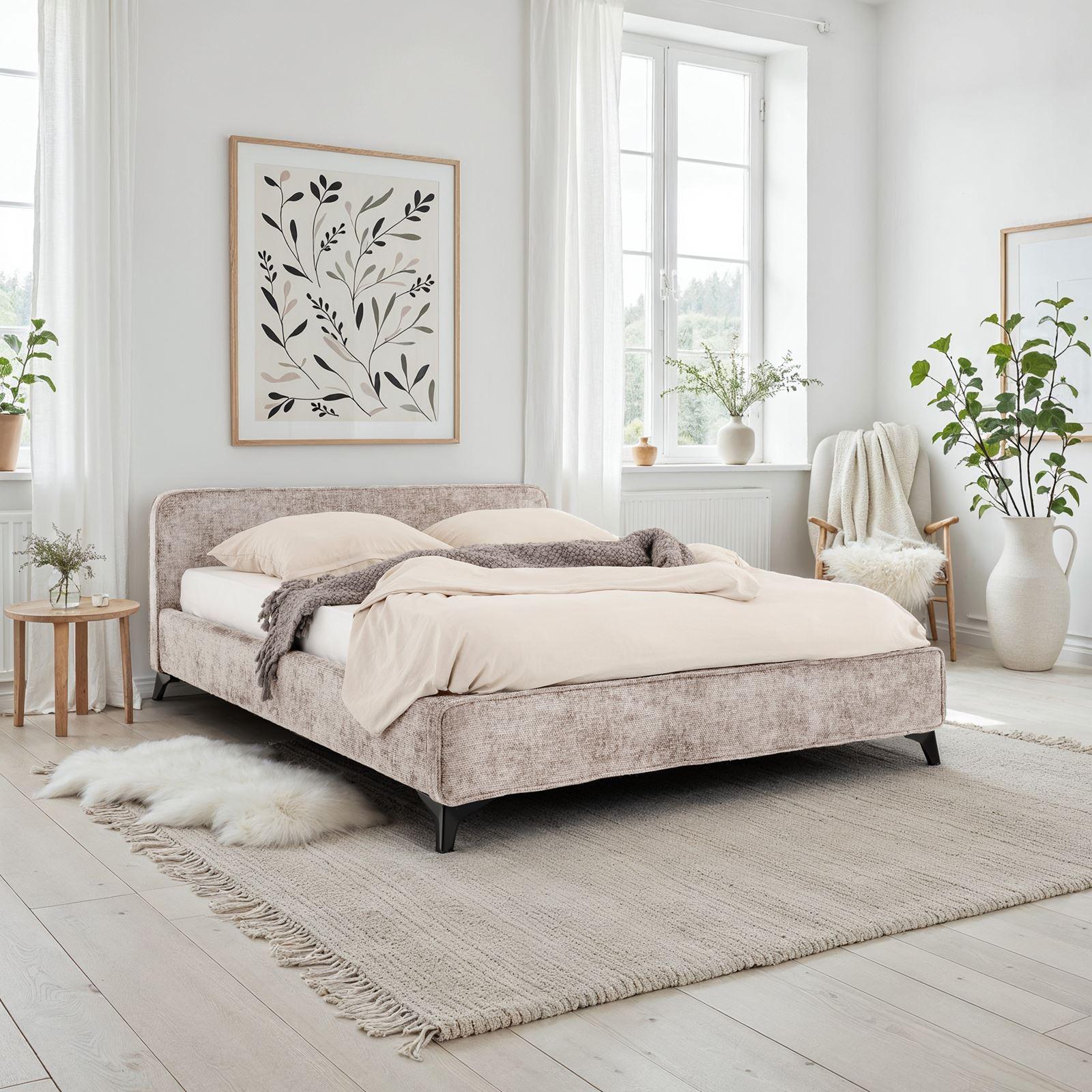 Lit double LEVERDA 140x190 cm, Revêtement en tissu, Lit style moderne pour 2 personnes, Cadre de lit avec sommier inclus, Beige