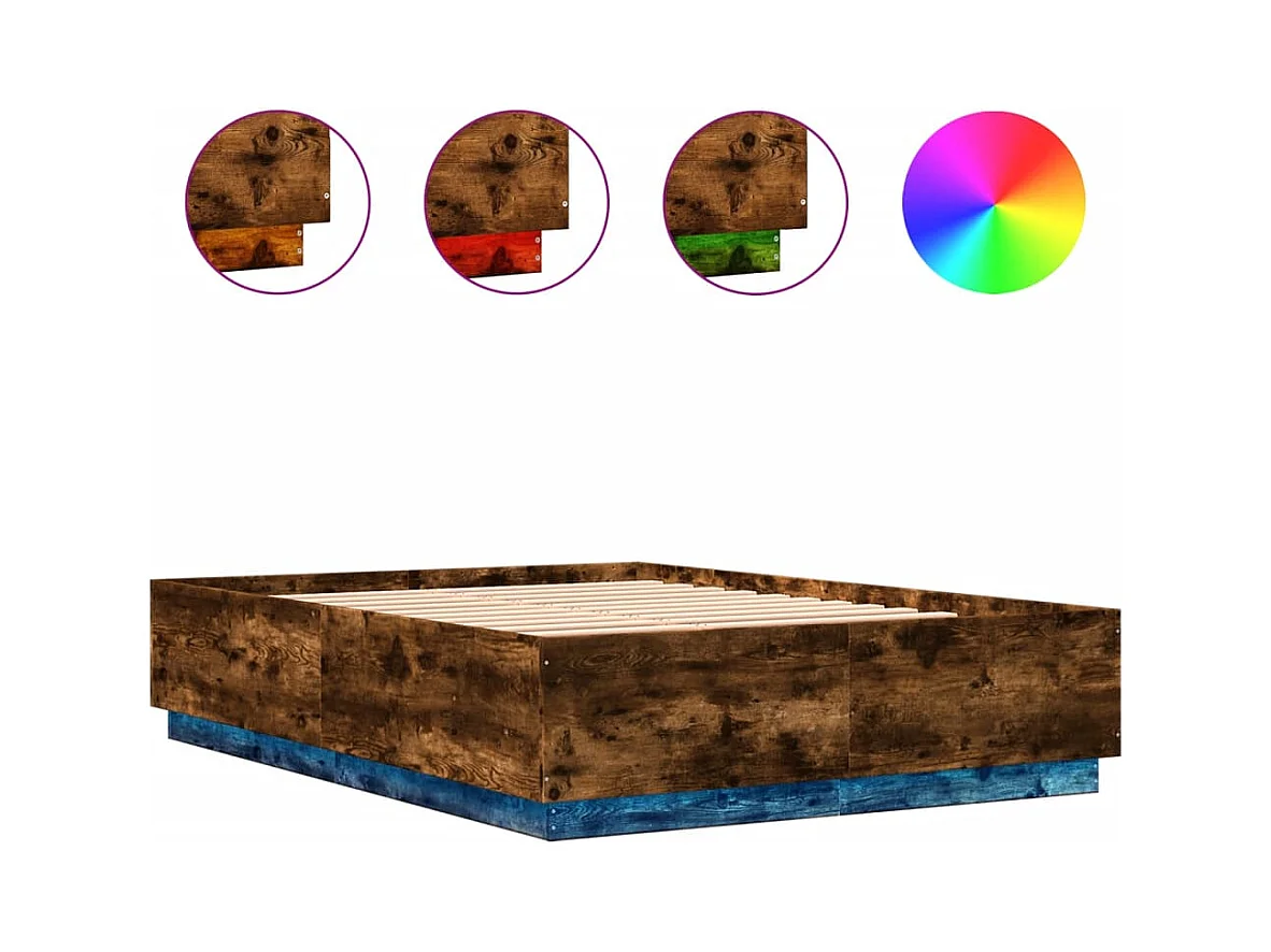Lit double | Lit adulte | Cadre de lit avec LED chêne fumé 150x200 cm