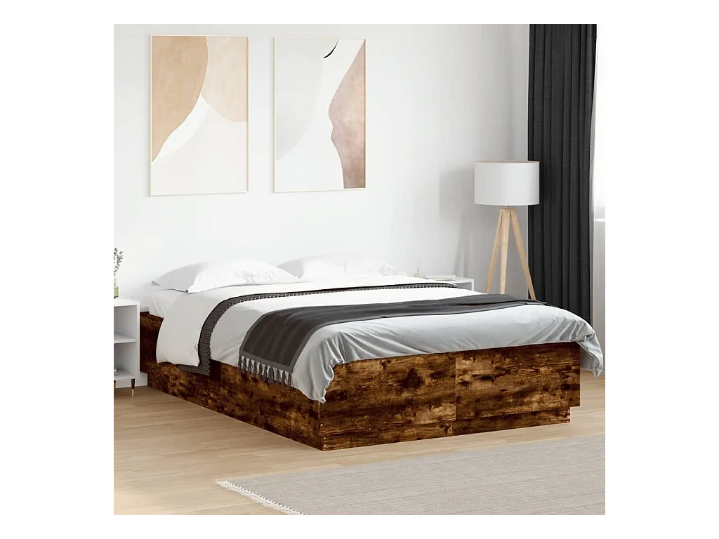 Lit double | Lit adulte | Cadre de lit avec LED chêne fumé 160x200 cm