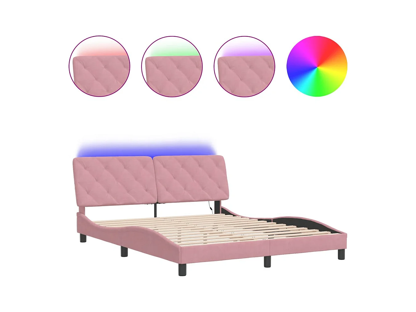 Lit double | Lit adulte | Cadre de lit avec LED rose 160x200 cm velours