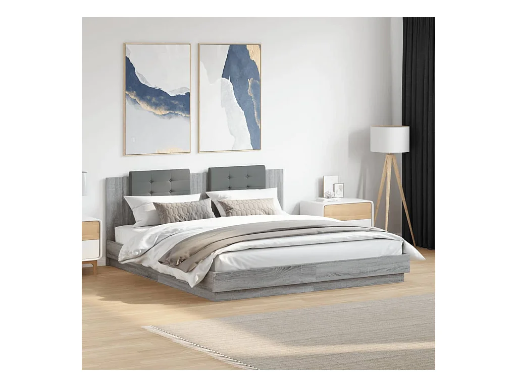 Lit double | Lit adulte | Cadre de lit avec LED sonoma gris 160x200 cm