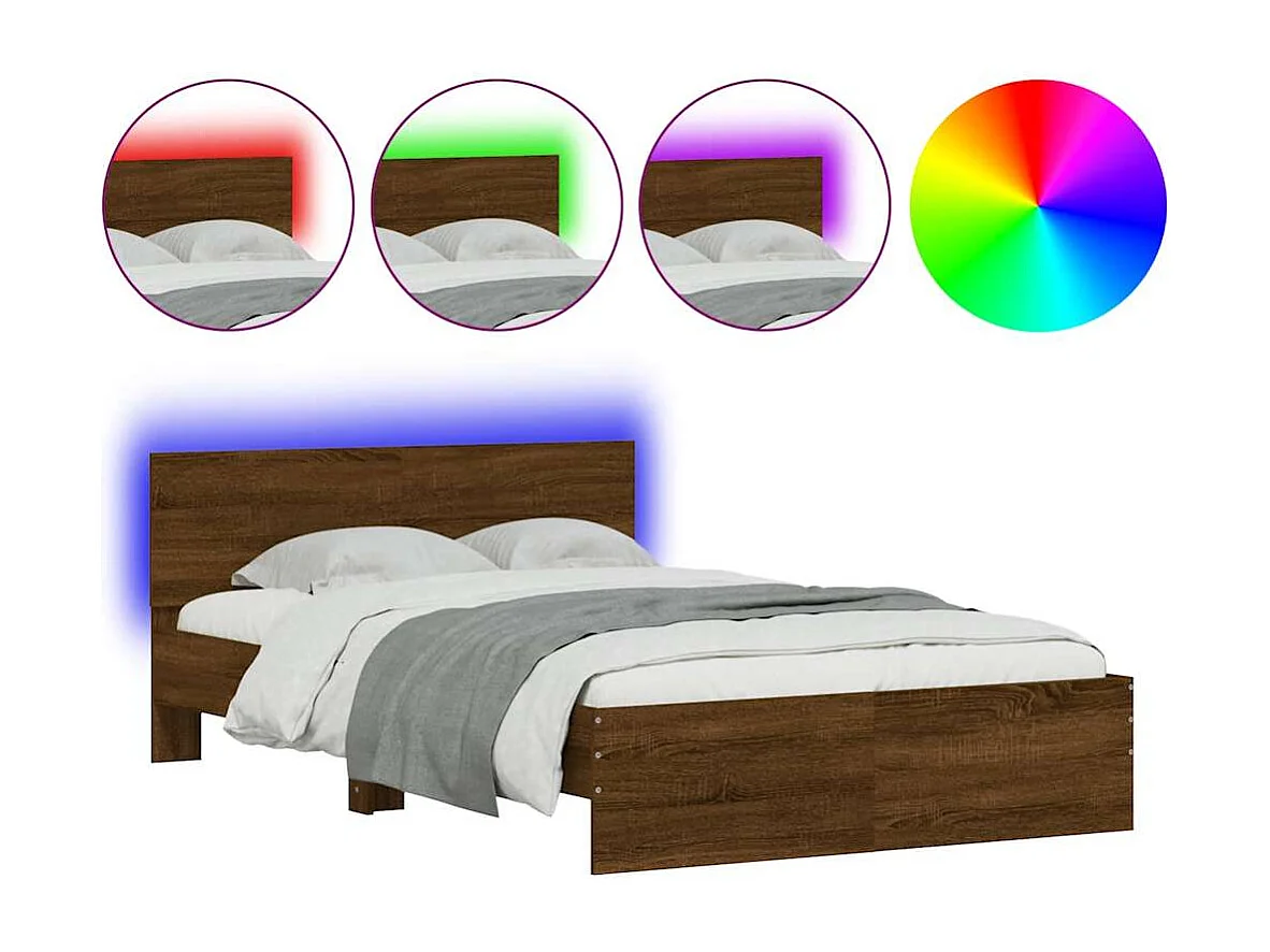 Lit double | Lit adulte | Cadre de lit avec tête de lit et LED chêne marron 140x200 cm