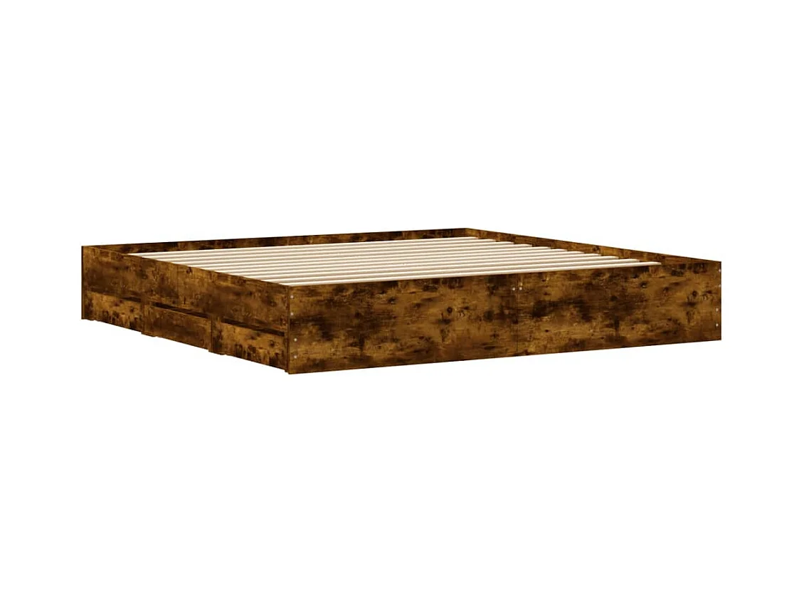 Lit double | Lit adulte | Cadre de lit avec tiroirs chêne fumé 180x200 cm