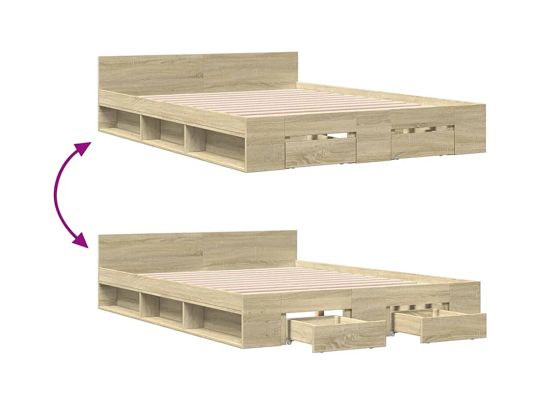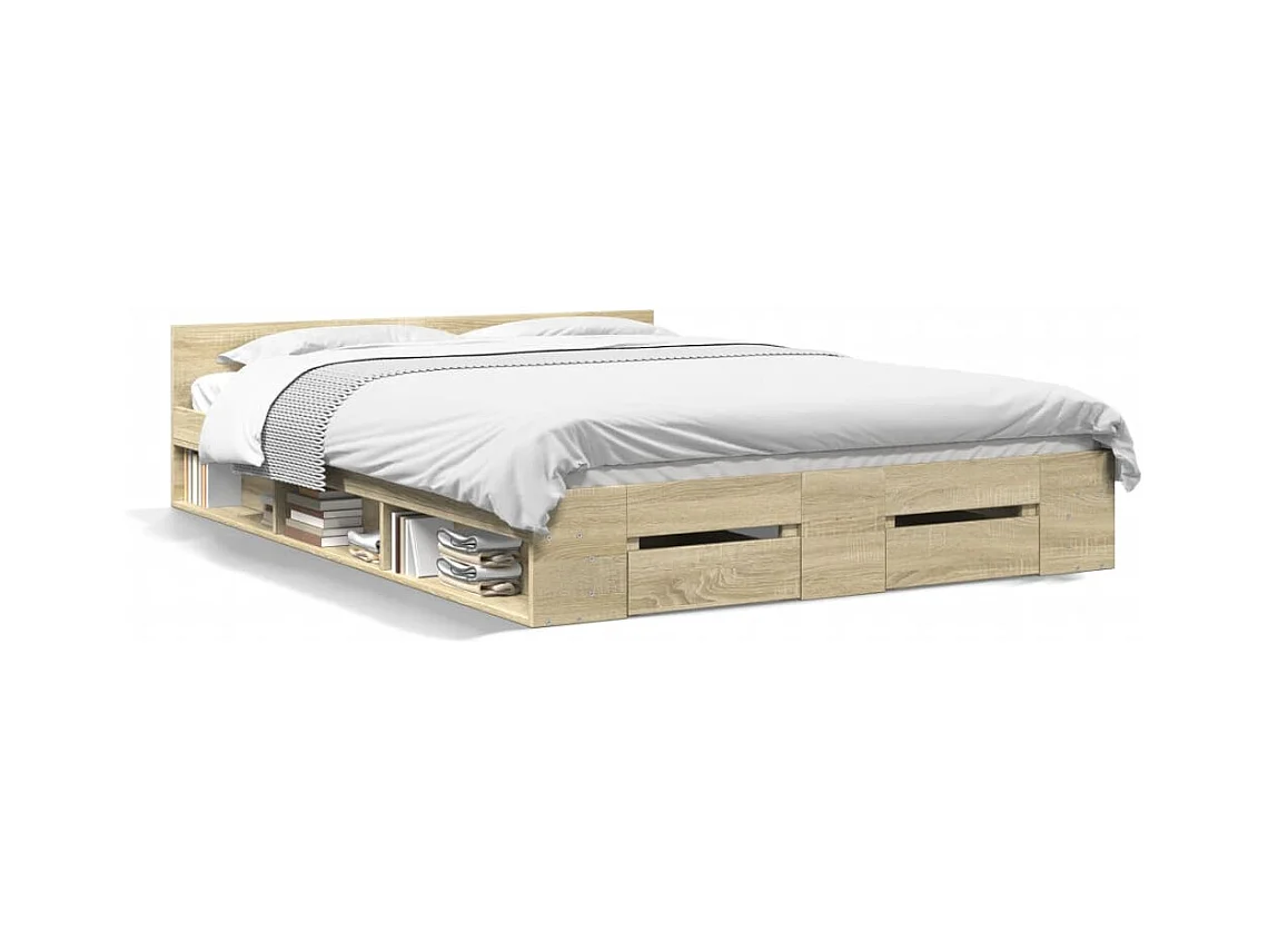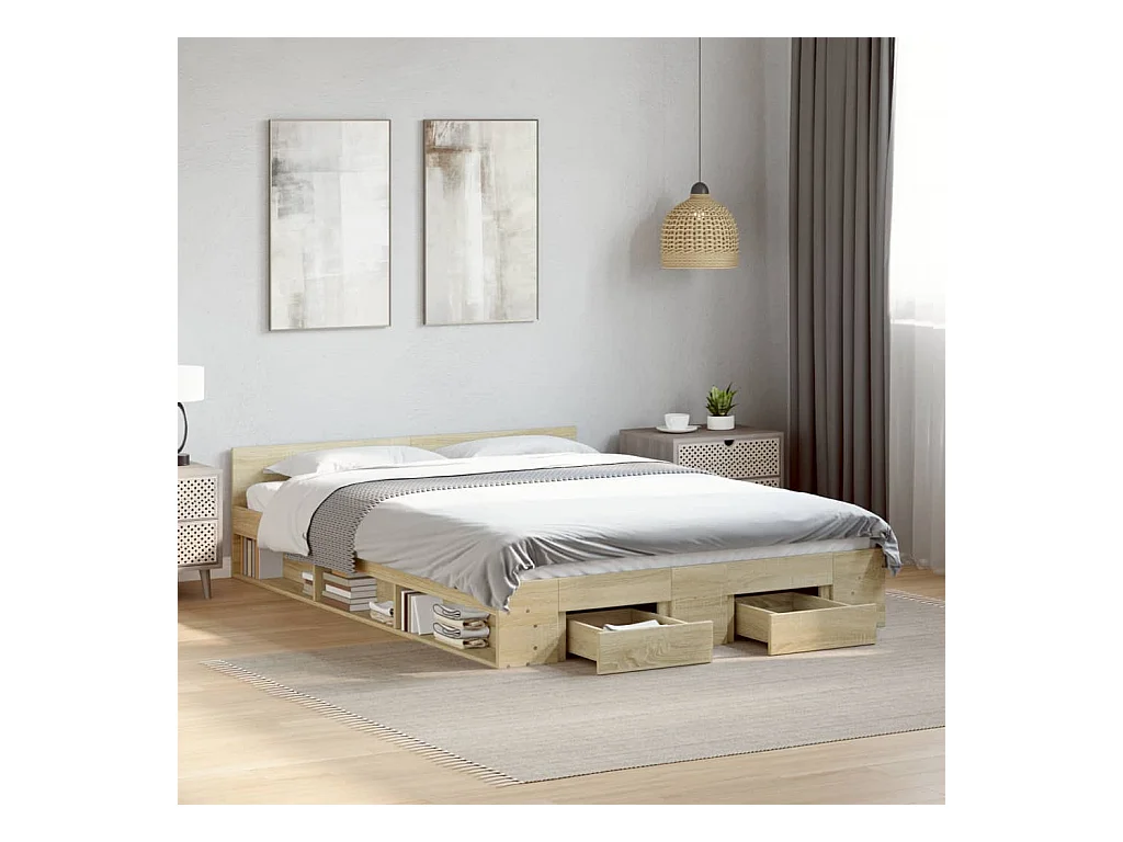 Lit double | Lit adulte | Cadre de lit avec tiroirs chêne sonoma 160x200 cm