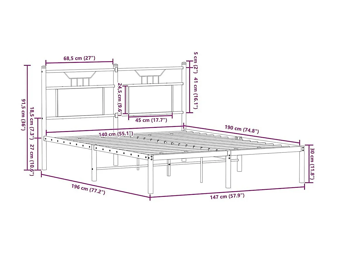 Cadre de lit en métal avec tête de lit chêne sonoma 140x190 cm