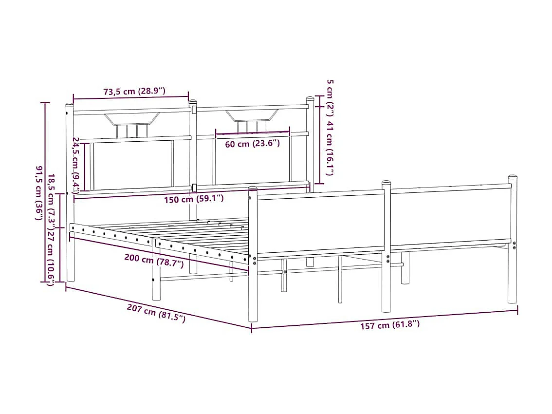 Lit double | Lit adulte | Cadre de lit chêne fumé 150x200 cm bois ingénierie