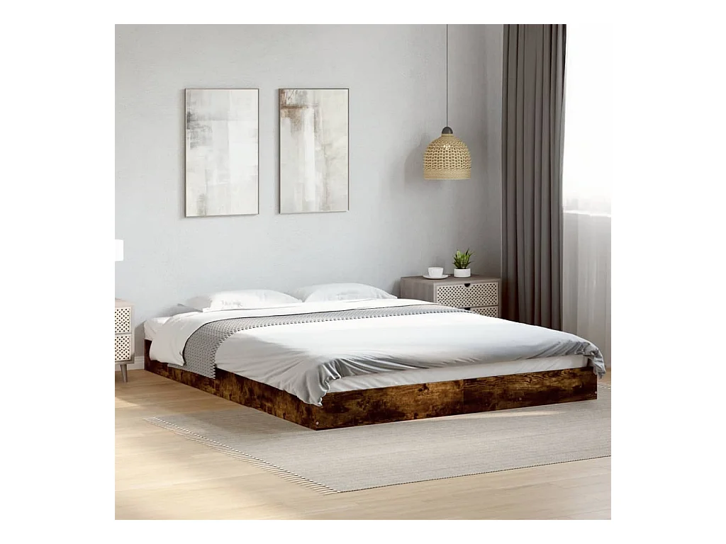 Lit double | Lit adulte | Cadre de lit chêne fumé 160x200 cm bois ingénierie