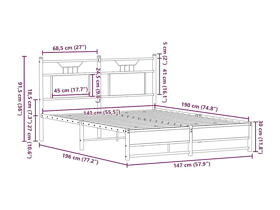 Lit double | Lit adulte | Cadre de lit chêne sonoma 140x190 cm