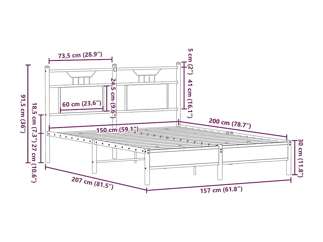 Lit double | Lit adulte | Cadre de lit chêne sonoma 150x200 cm