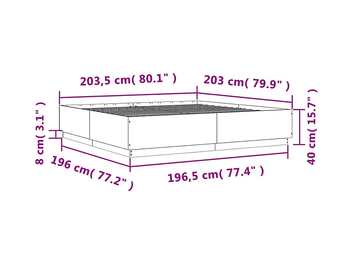 Lit double | Lit adulte | Cadre de lit chêne sonoma 200x200 cm