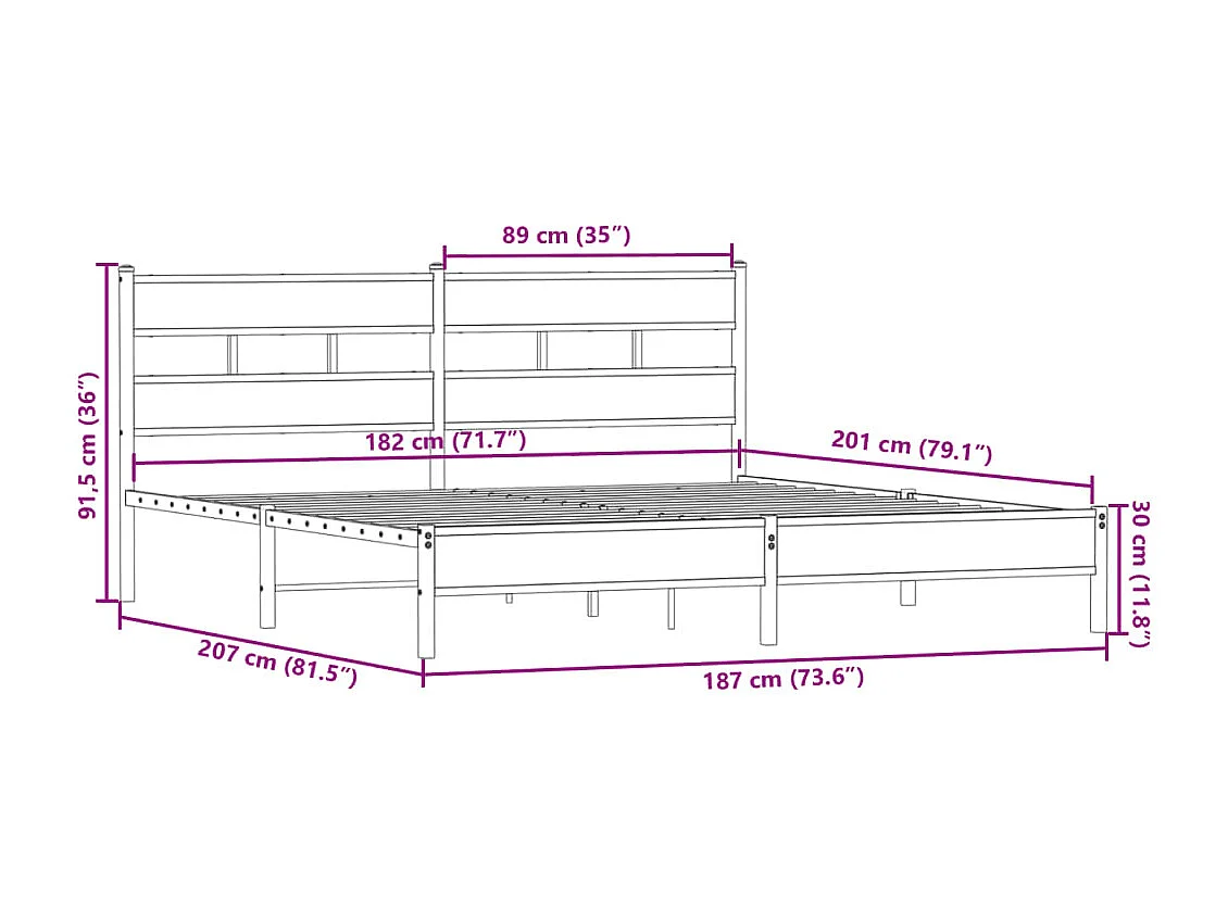 Lit double | Lit adulte | Cadre de lit en métal chêne fumé 180x200 cm