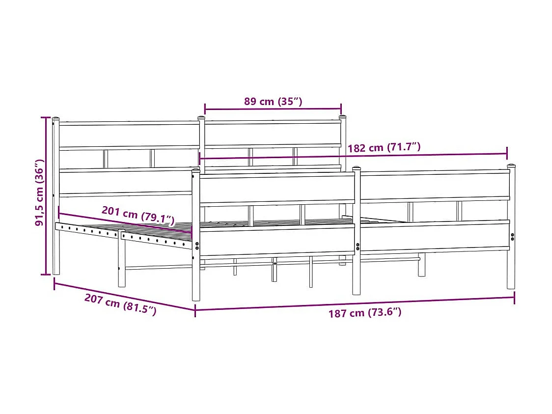 Lit double | Lit adulte | Cadre de lit en métal chêne fumé 180x200 cm