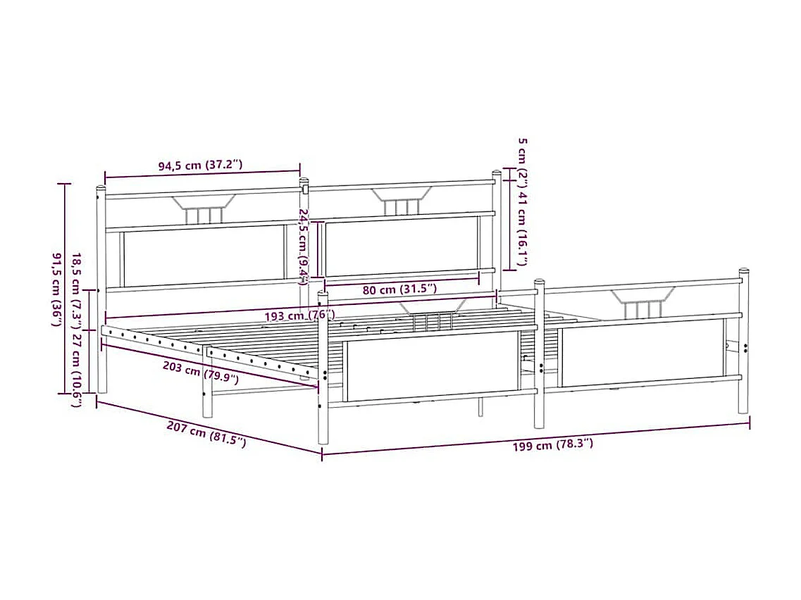 Lit double | Lit adulte | Cadre de lit en métal chêne marron 193x203 cm