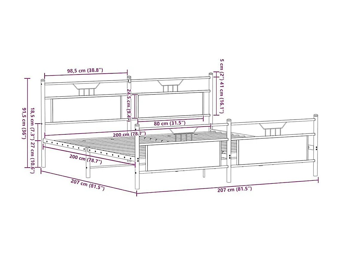 Lit double | Lit adulte | Cadre de lit en métal chêne marron 200x200 cm