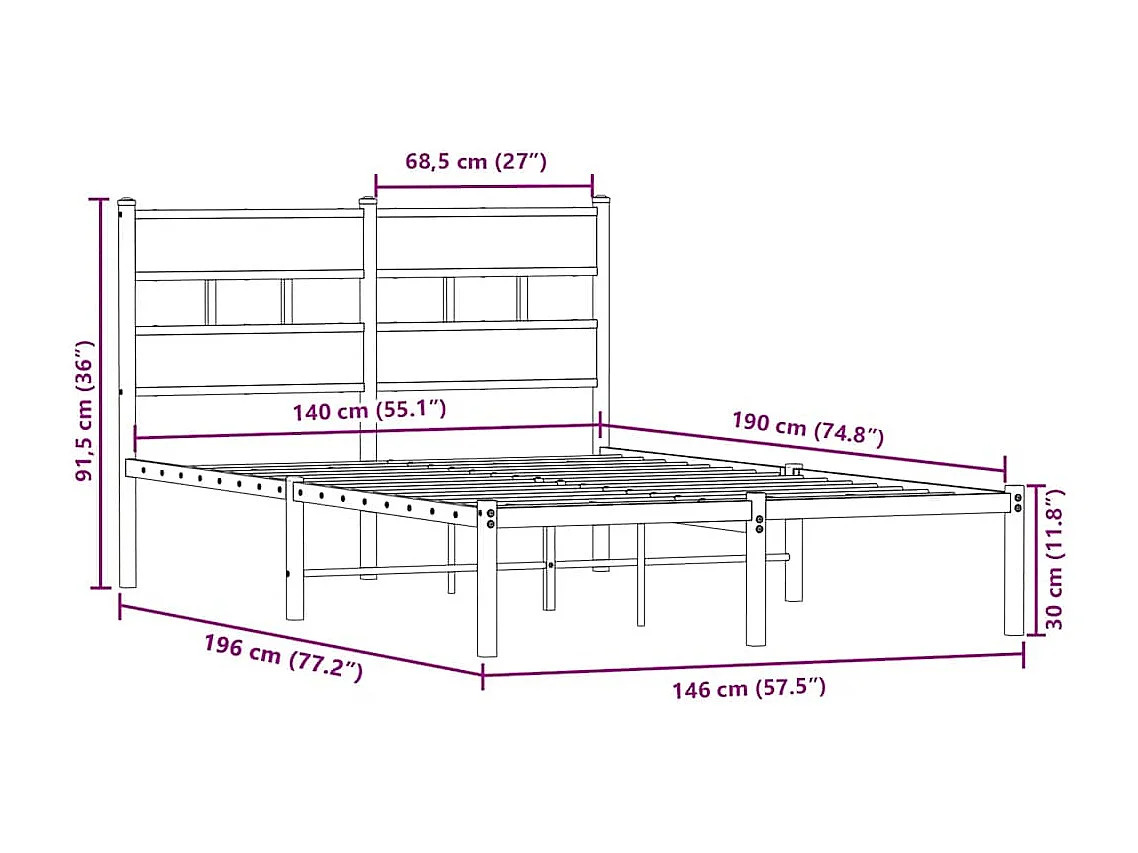Lit double | Lit adulte | Cadre de lit en métal chêne sonoma 140x190 cm