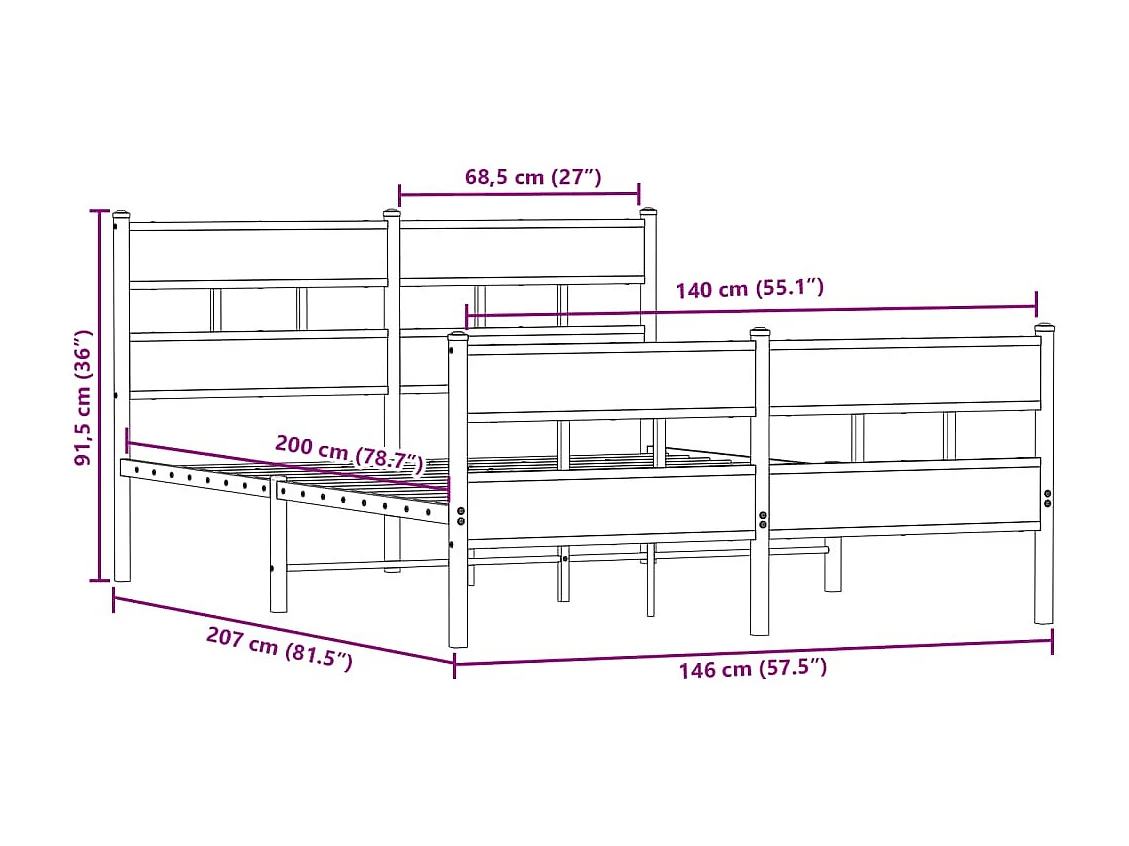 Lit double | Lit adulte | Cadre de lit en métal chêne sonoma 140x200 cm