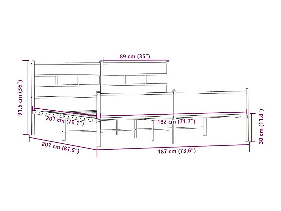 Lit double | Lit adulte | Cadre de lit en métal chêne sonoma 180x200 cm