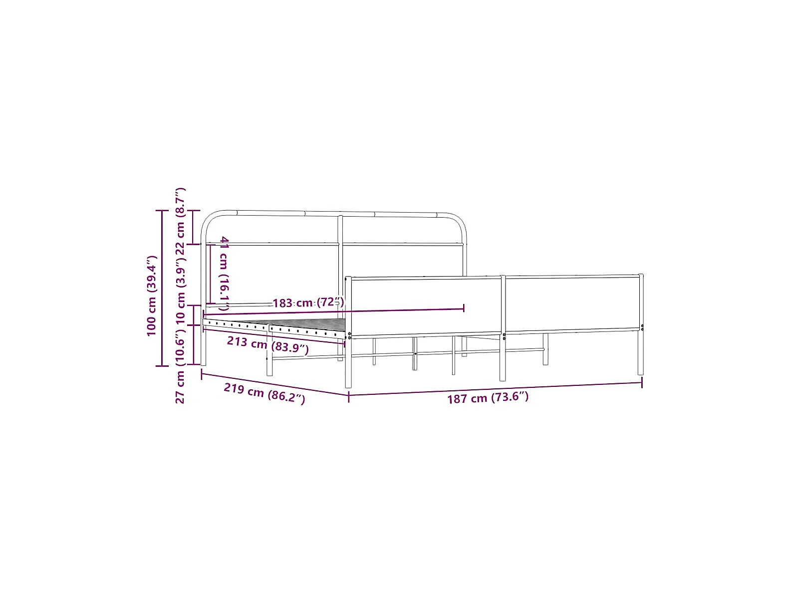 Lit double | Lit adulte | Cadre de lit en métal chêne sonoma 183x213 cm
