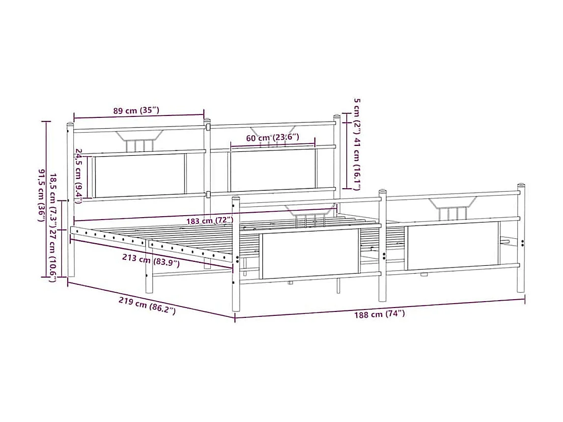Lit double | Lit adulte | Cadre de lit en métal chêne sonoma 183x213 cm