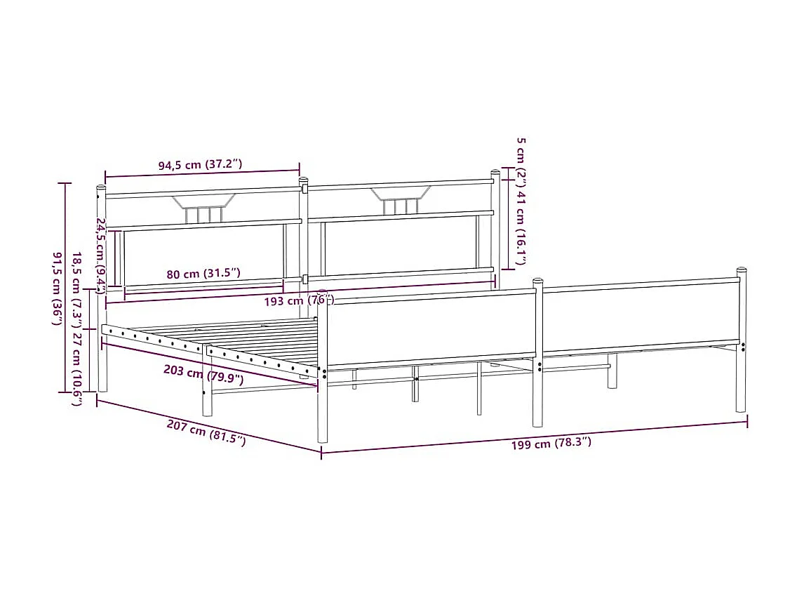 Lit double | Lit adulte | Cadre de lit en métal chêne sonoma 193x203 cm