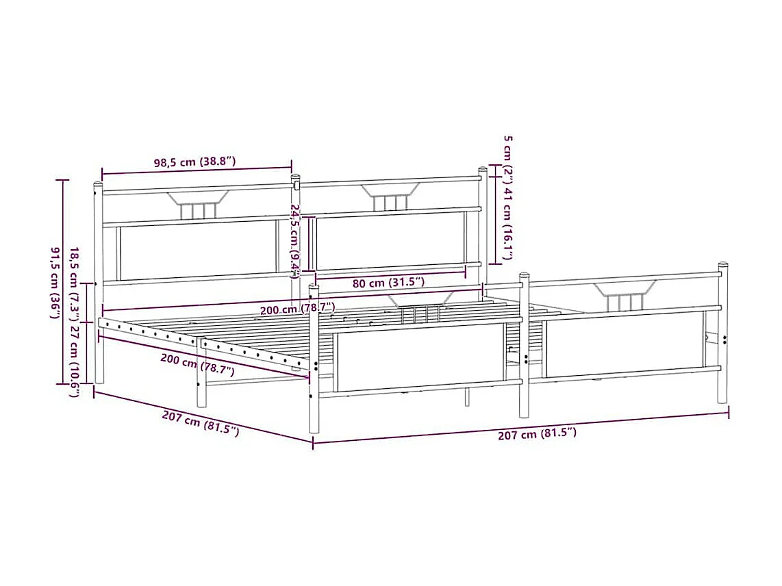 Lit double | Lit adulte | Cadre de lit en métal chêne sonoma 200x200 cm