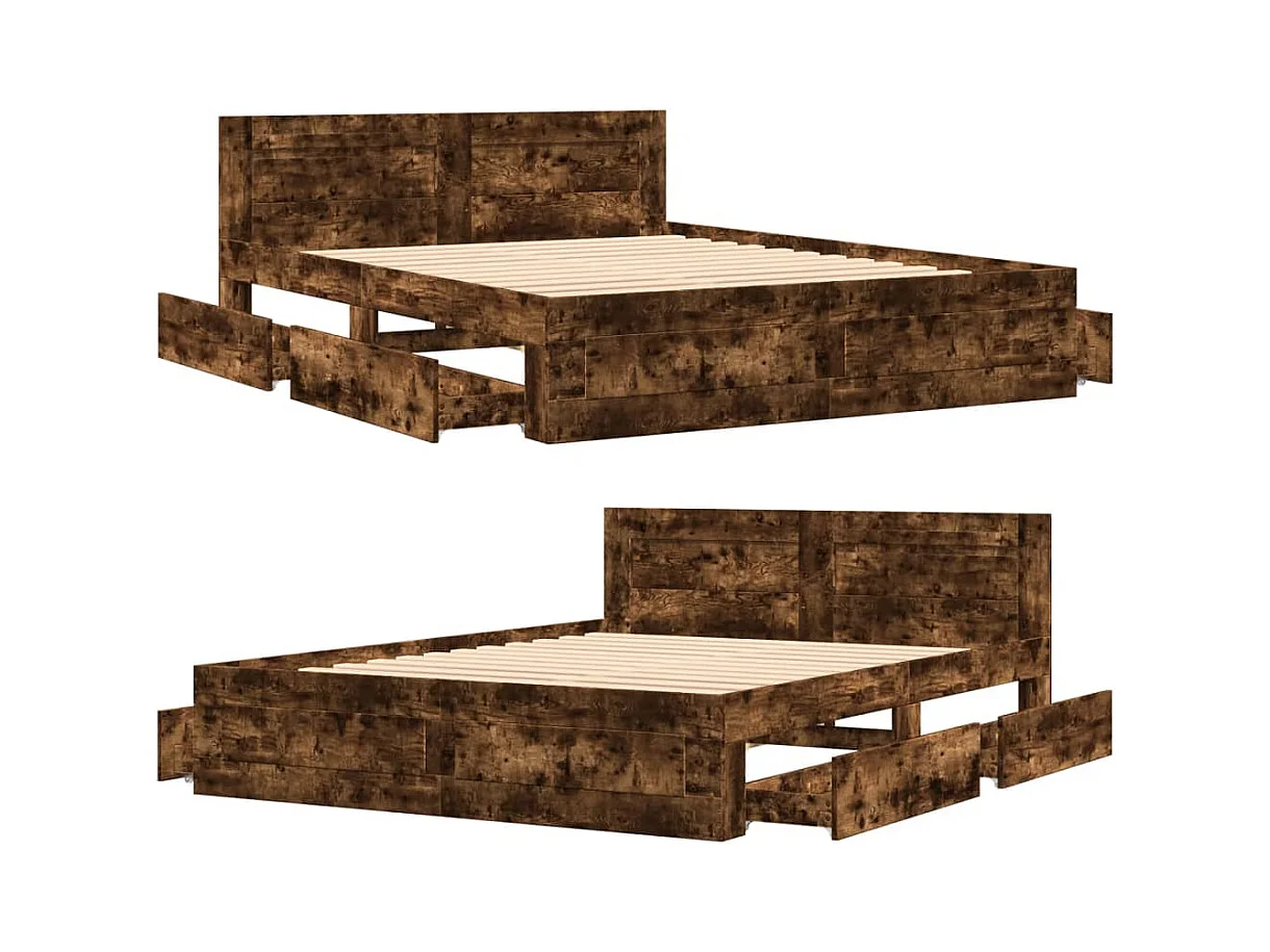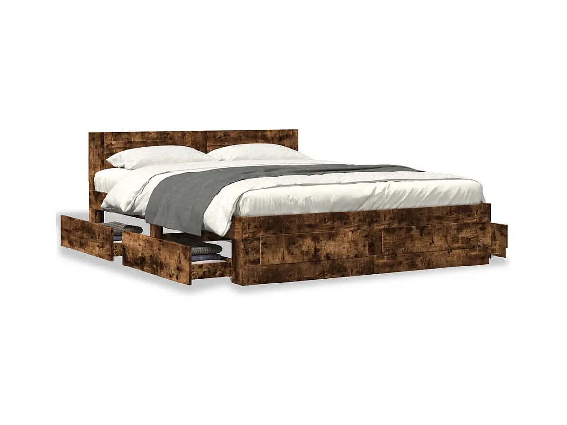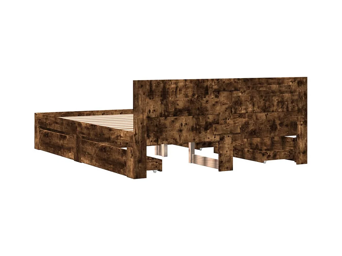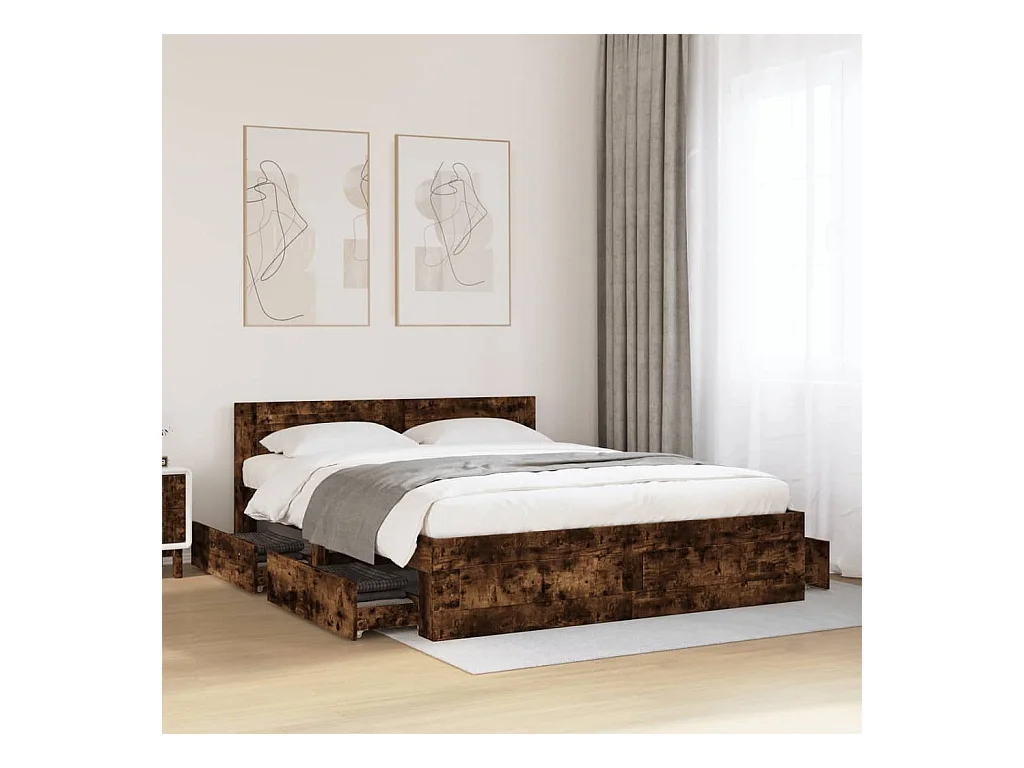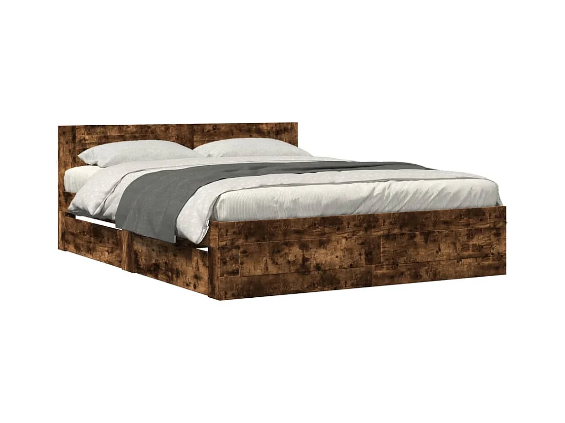 Lit double | Lit adulte | Cadre de lit et tête de lit chêne fumé 160x200 cm