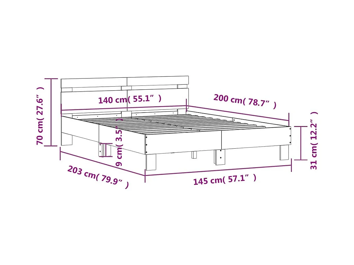 Lit double | Lit adulte | Cadre de lit gris béton 140x200 cm