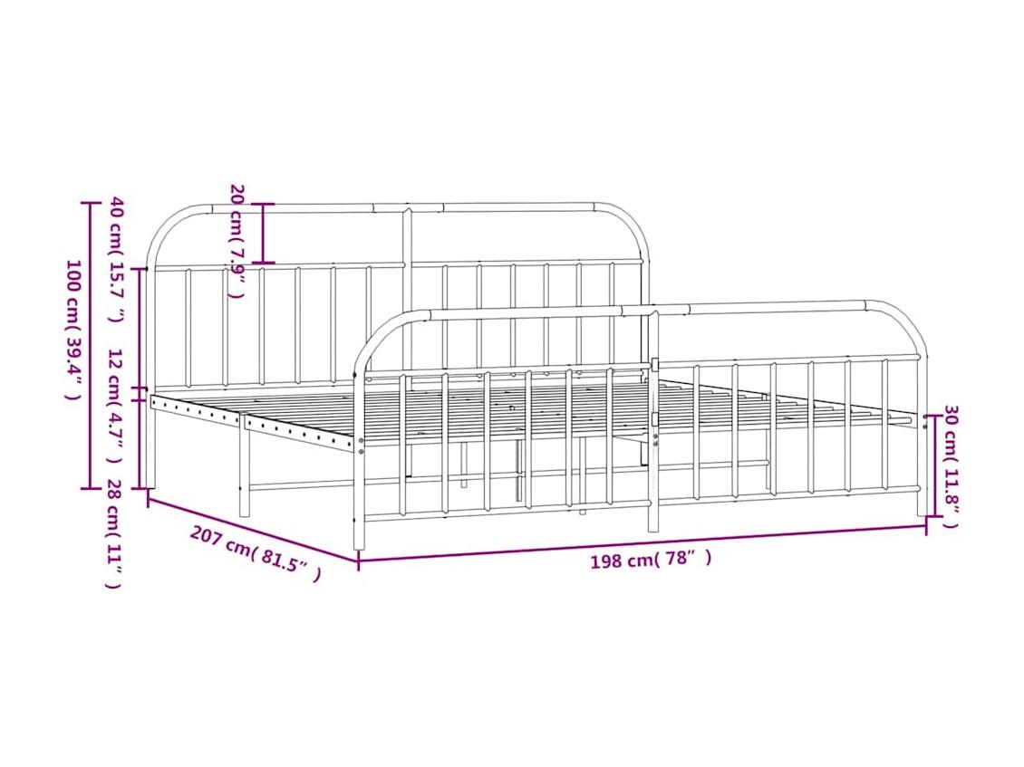 Lit double | Lit adulte | Cadre de lit métal avec pied de lit noir 193x203cm