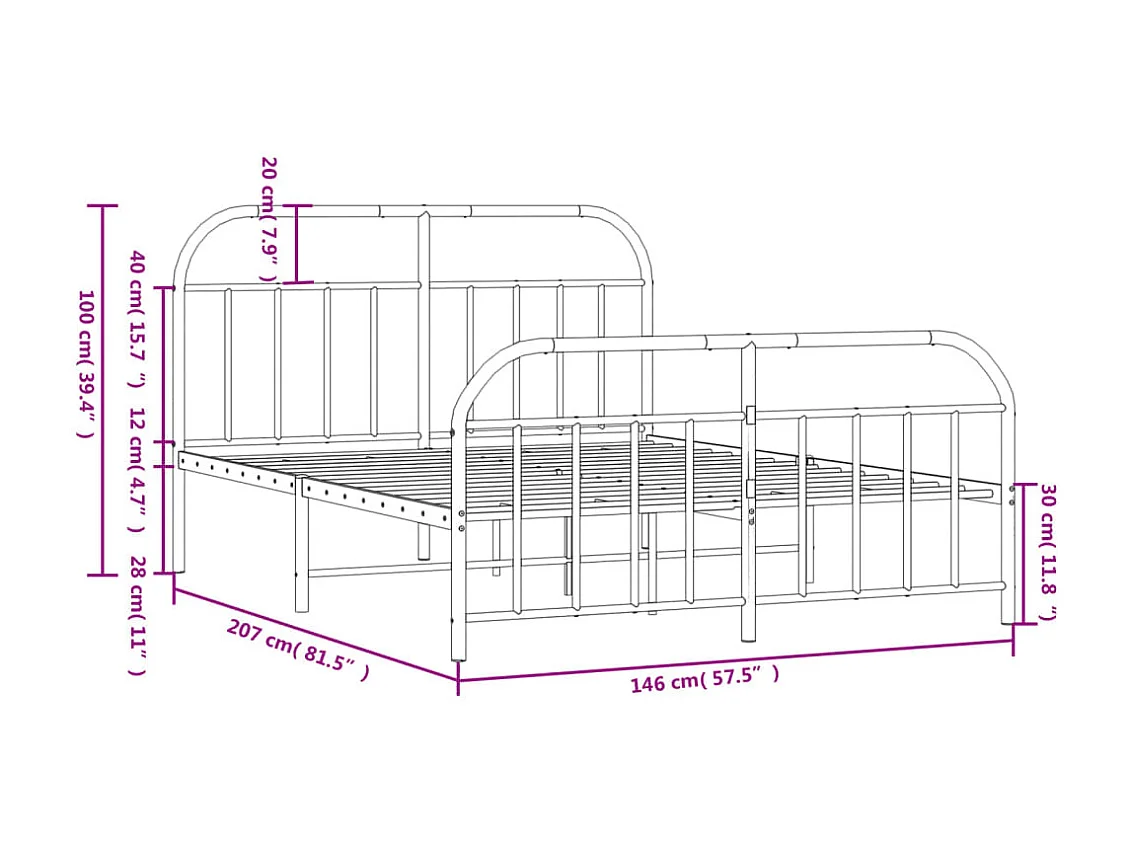 Lit double | Lit adulte | Cadre de lit métal et pied de lit blanc 140x200 cm