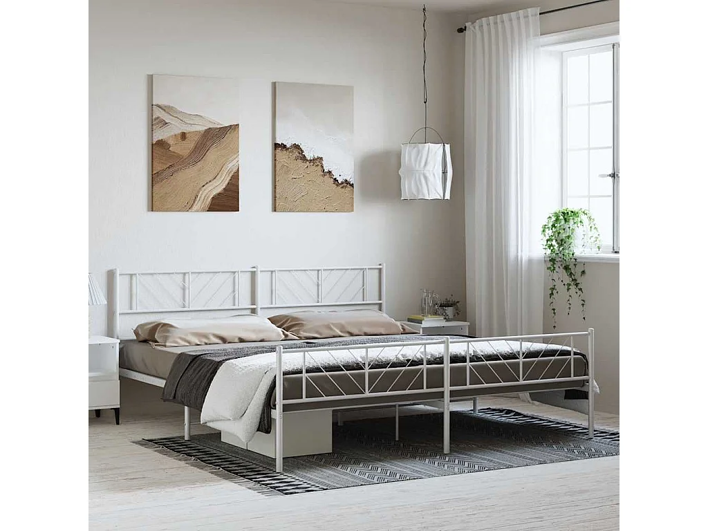 Cadre de lit métal avec tête de lit/pied de lit blanc 193x203cm