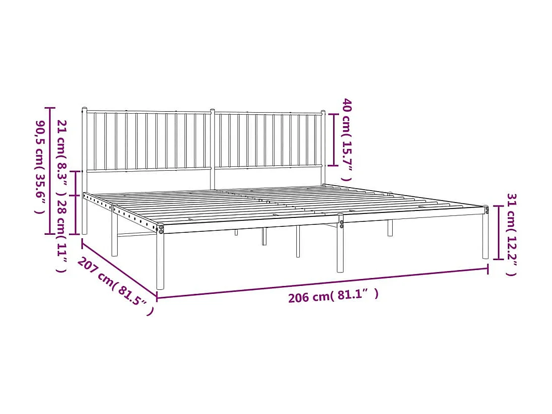 Lit double métal + tête de lit blanc 200x200 cm FR88951