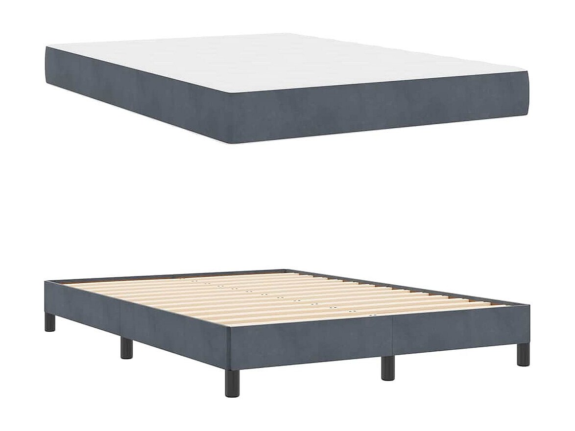 Lit double-Lit adulte-Lit boxspring avec matelas Gris foncé 140 x 200 cm Velours