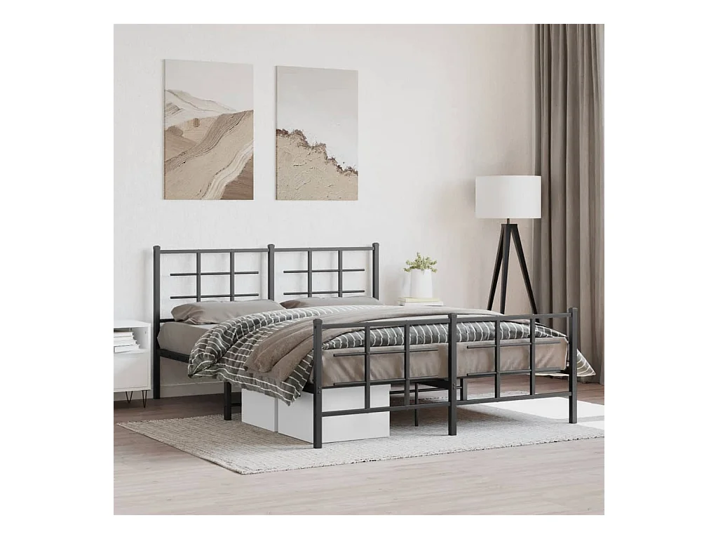 Lit double métal + tête de lit/pied de lit noir 160x200 cm FR48132