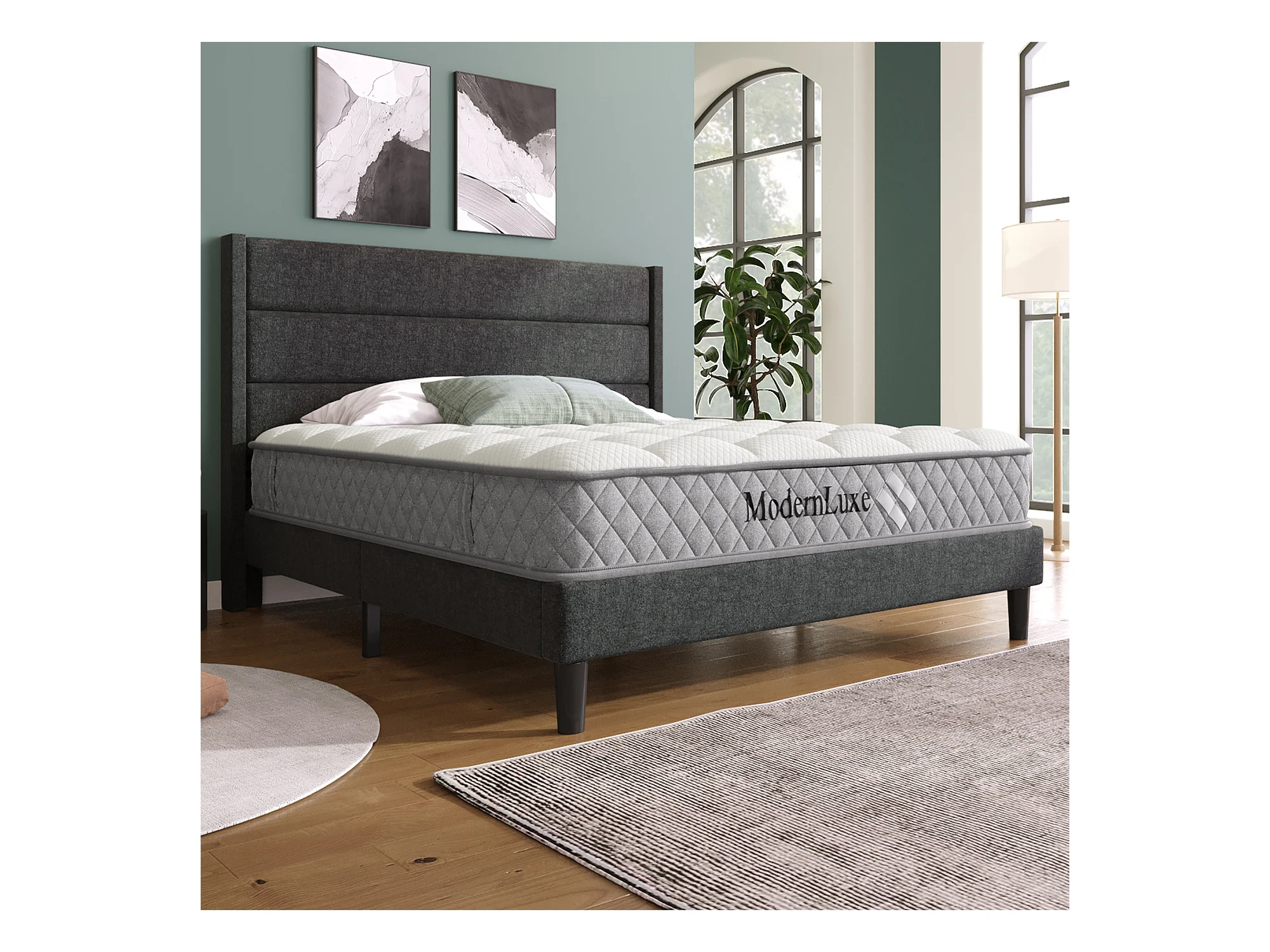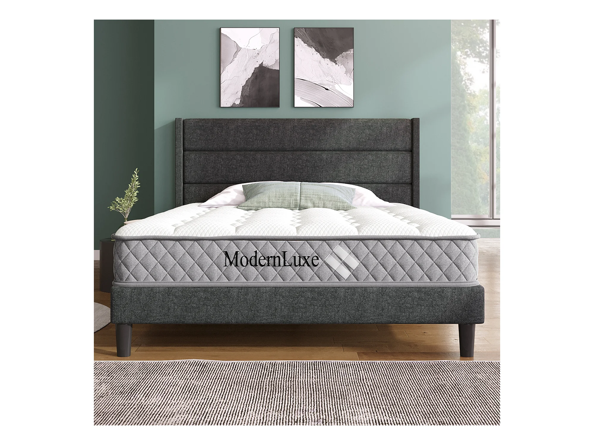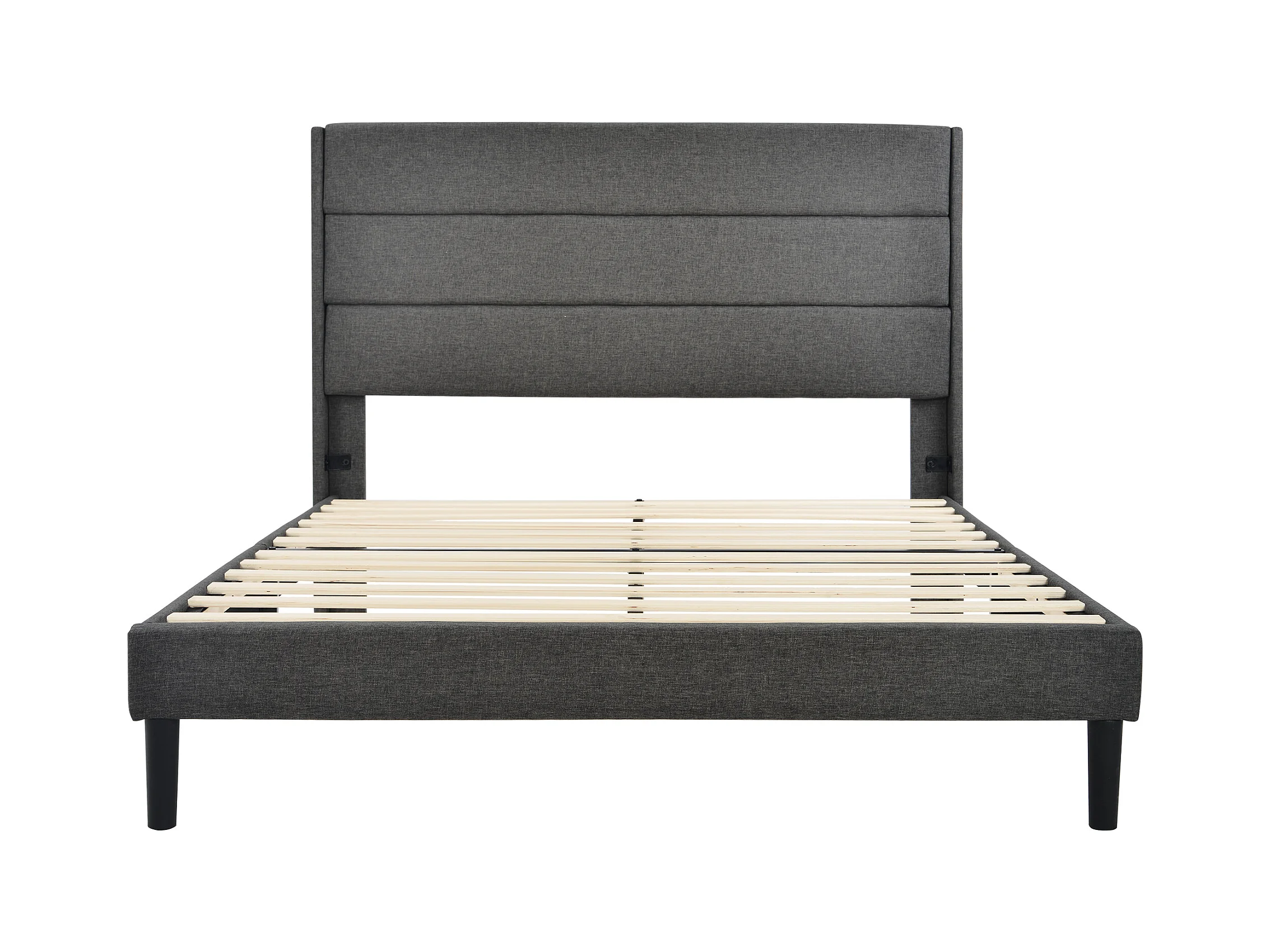 Lit double rembourré - 140 x 200 cm - avec sommier à lattes + tête de lit - lin - gris(avec matelas)