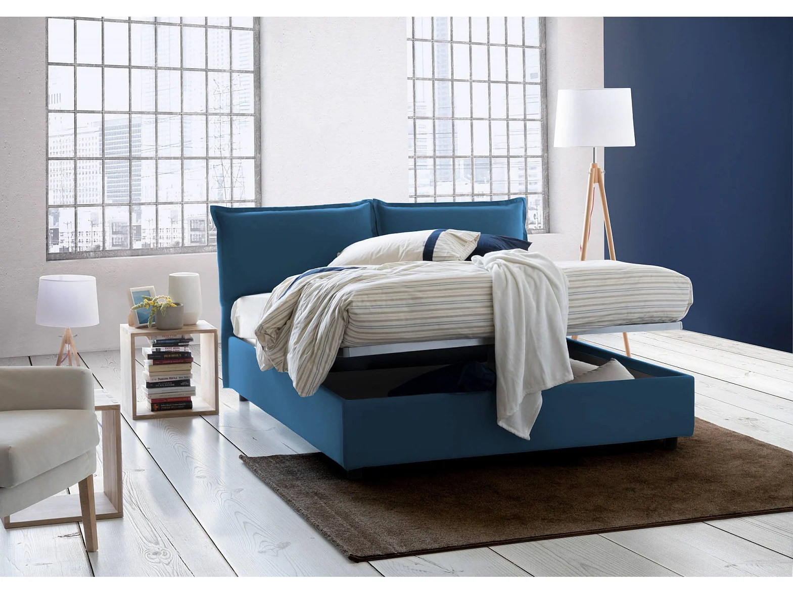 Lit double Sabrina, Lit coffre avec revêtement en tissu, 100% Made in Italy, Ouverture frontale, avec matelas 160x200 cm inclus, Bleu