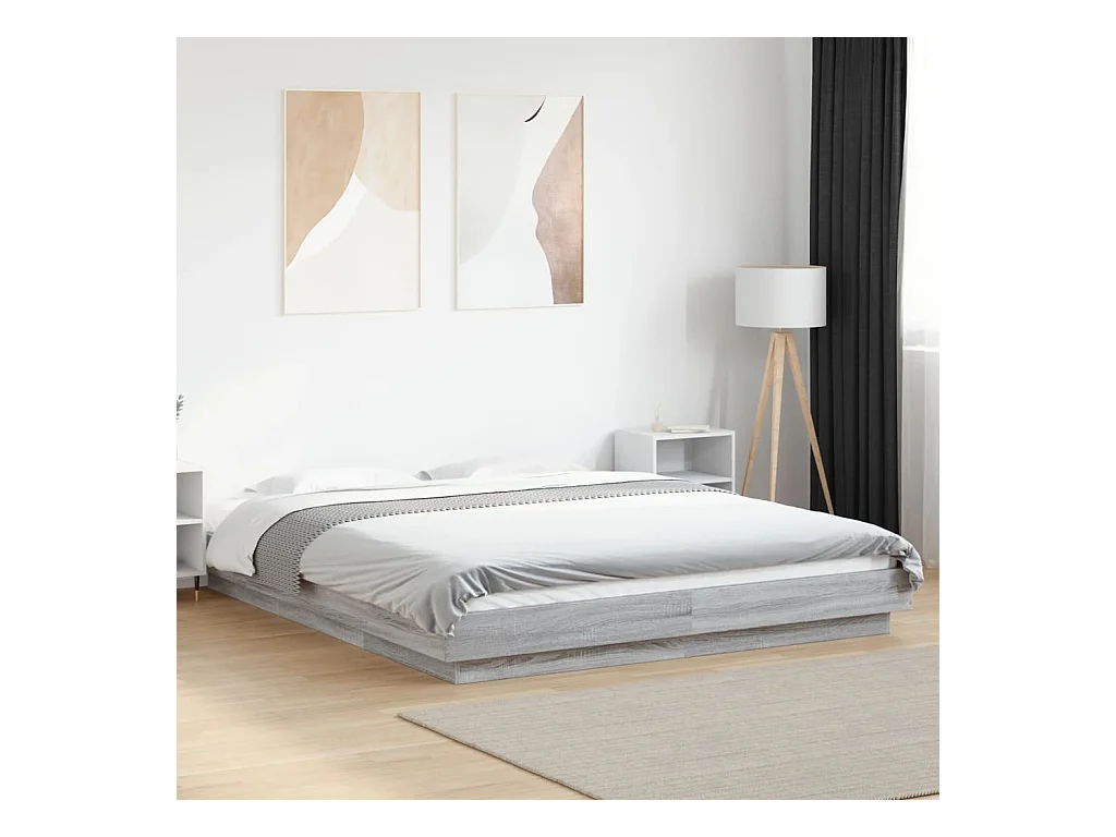 Lit double sonoma gris 150x200 cm bois d'ingénierie FR51197