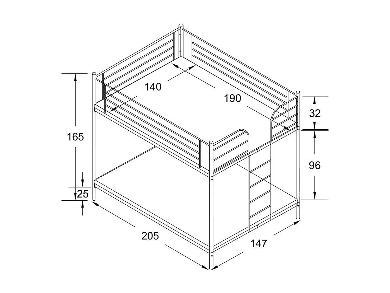 Lit double superposé 4 places 140x190 en acier TITAN, Gris