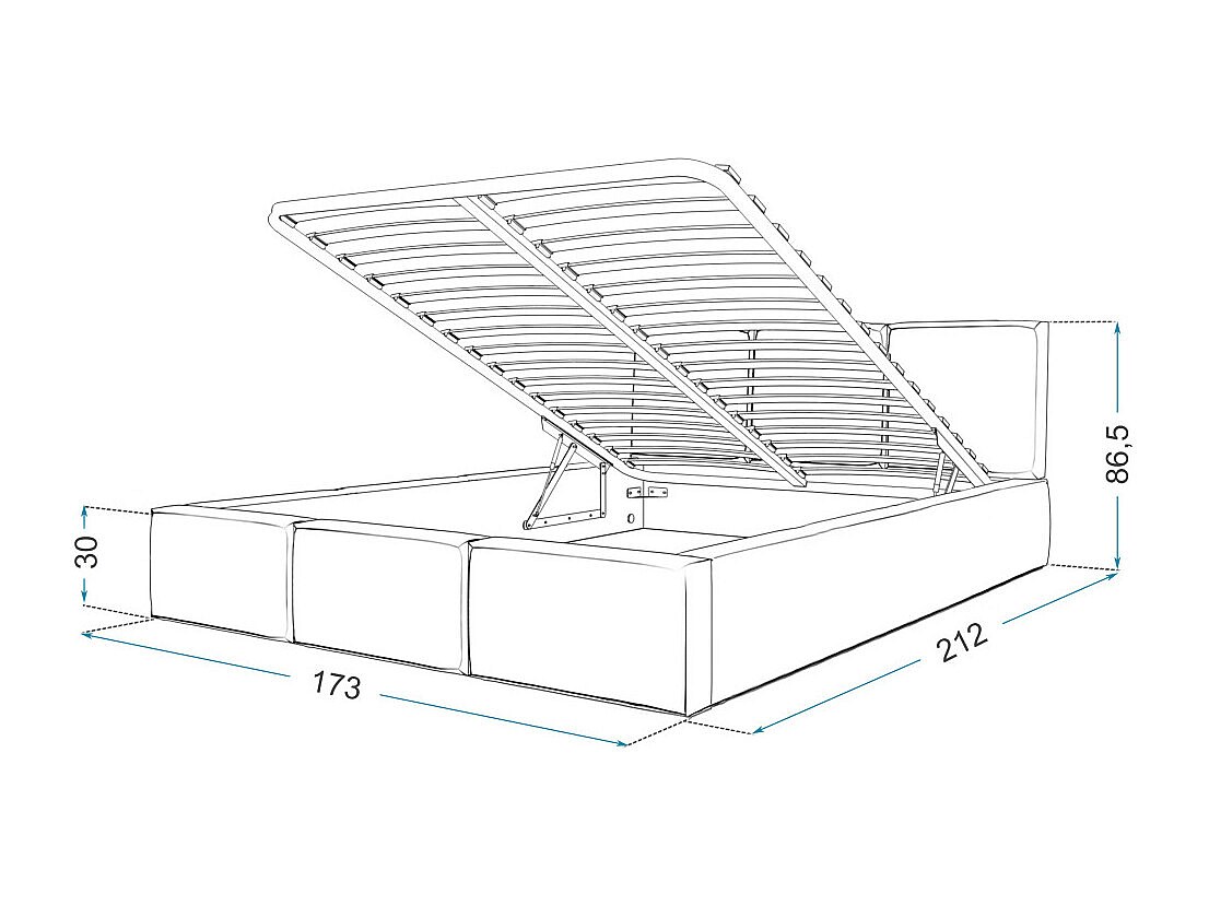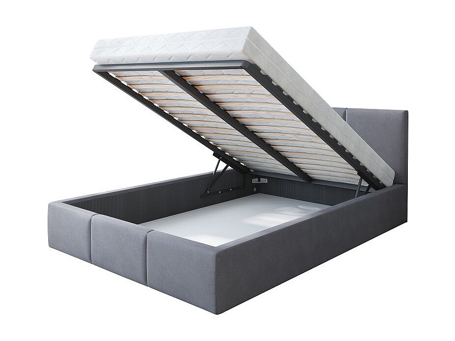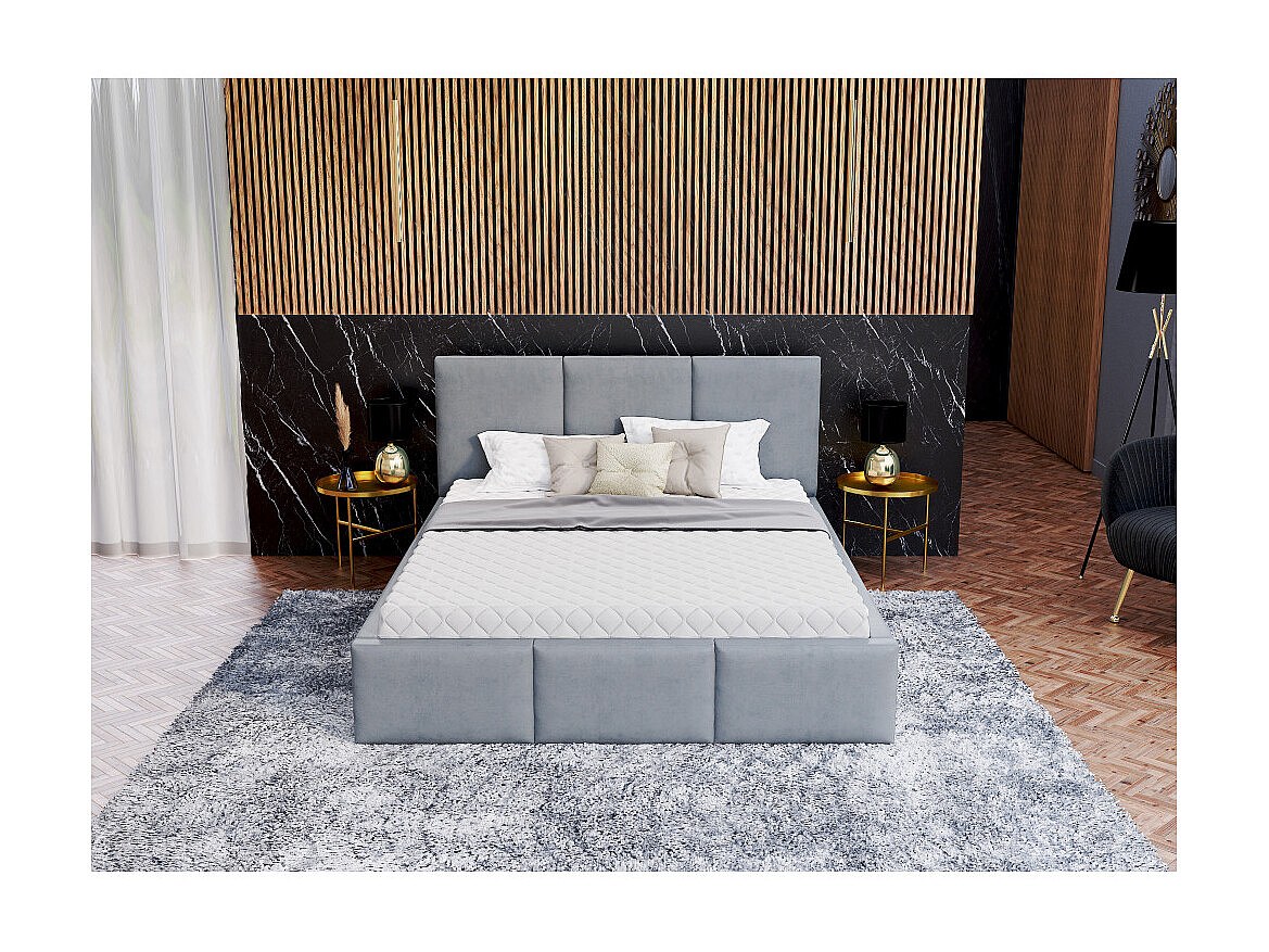 Lit Double Tesia 160x200 + coffre - Sommier inclus Gris clair