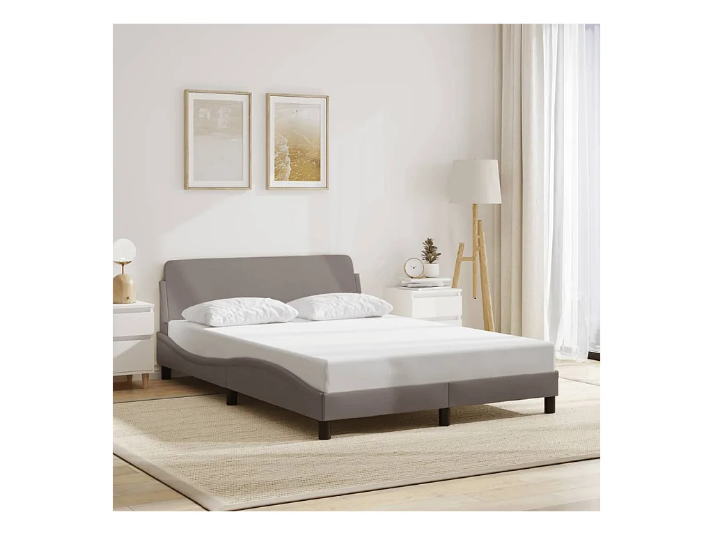 Lit double + tête de lit Taupe 140x200 cm Tissu FR24952