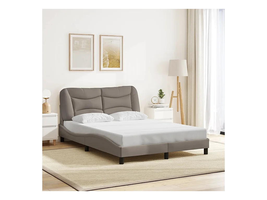 Lit double + tête de lit Taupe 140x200 cm Tissu FR42989