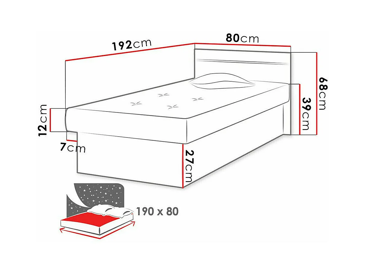 Lit Dover 101, Unique, Noir, 80x190, 80x192x68cm
