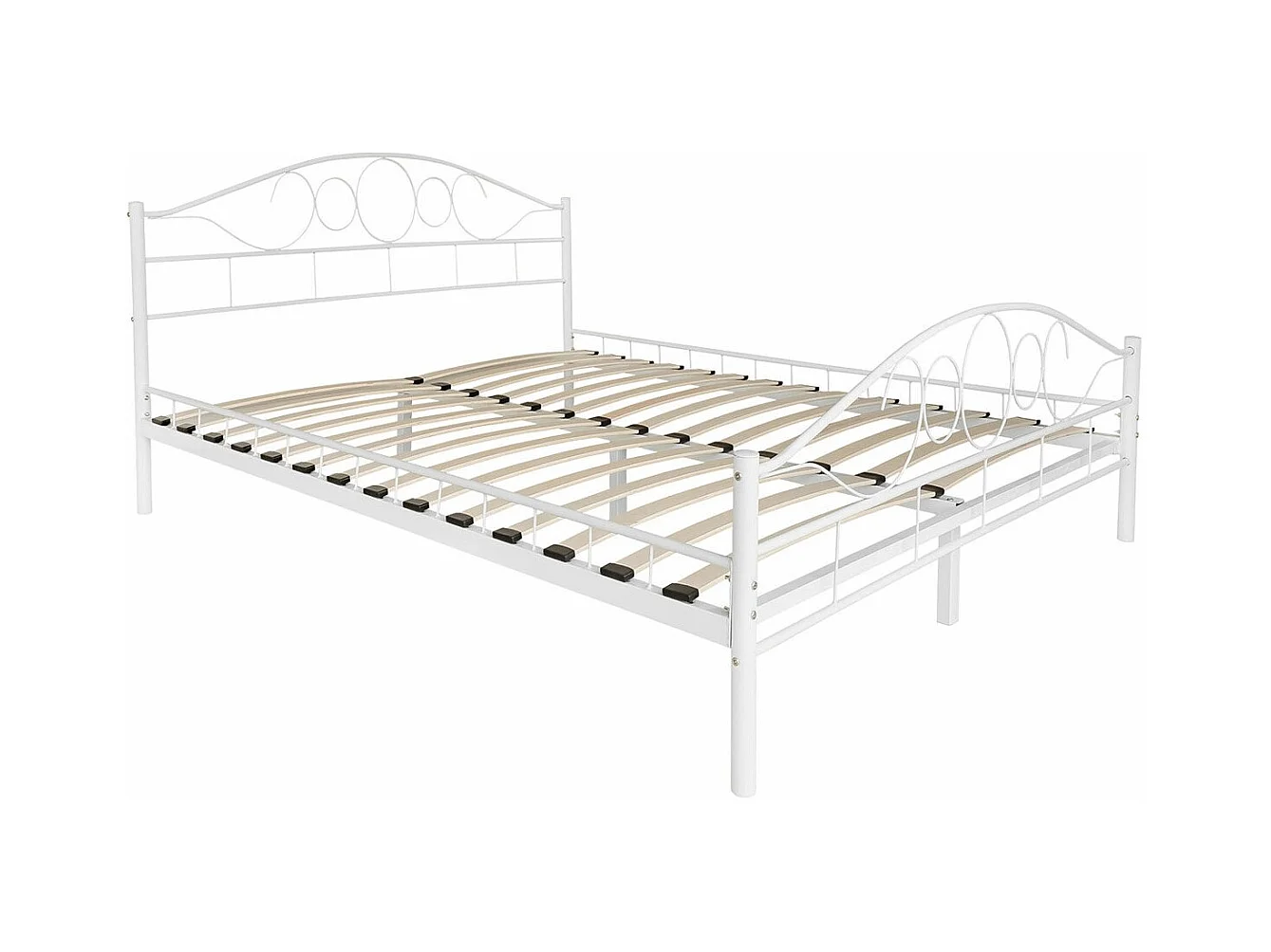 Lit Elmira 100, Double, Blanc, 160x200, Métal, Sommier à lattes, 167x207x89cm
