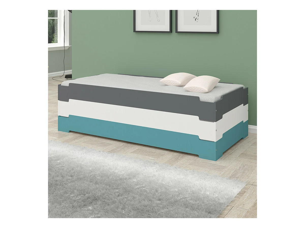 Lit empilable 90x190 cm panneaux de fibres gris STACK