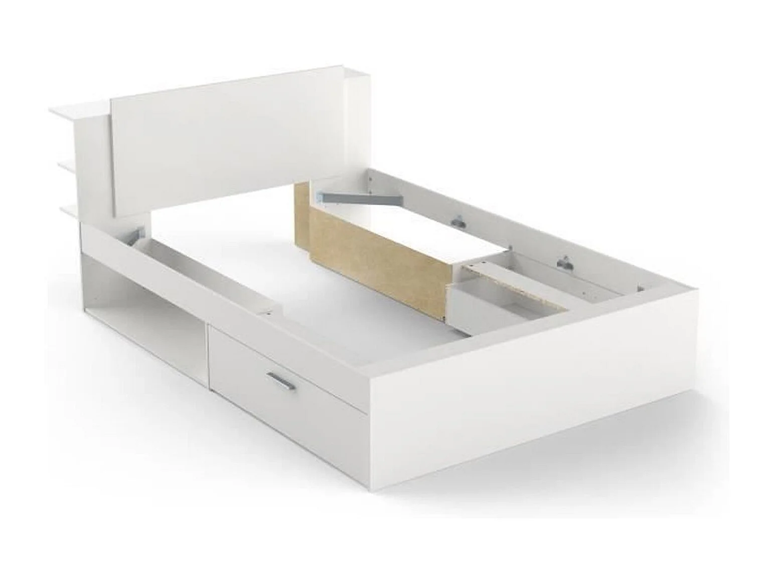Lit en 140x190/200 cm 2 tiroirs et 2 niches - L144,7 cm