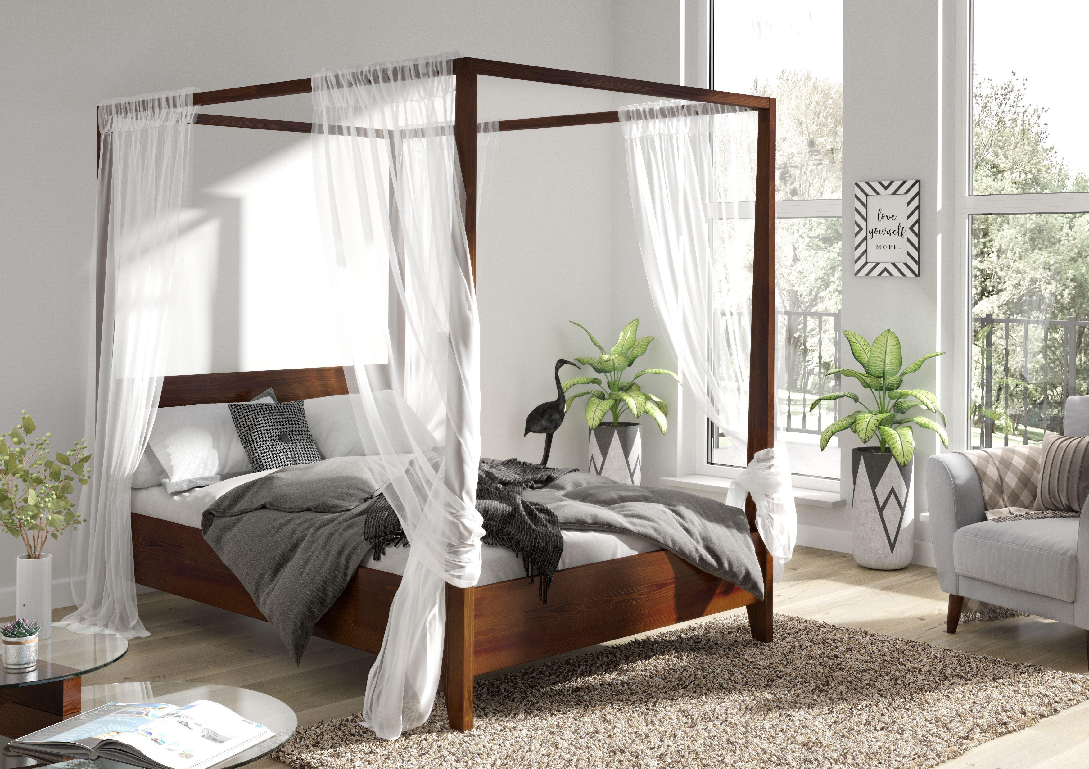 Lit en bois de hêtre avec baldaquin CANOPY / 160 x 200 cm, couleur noyer