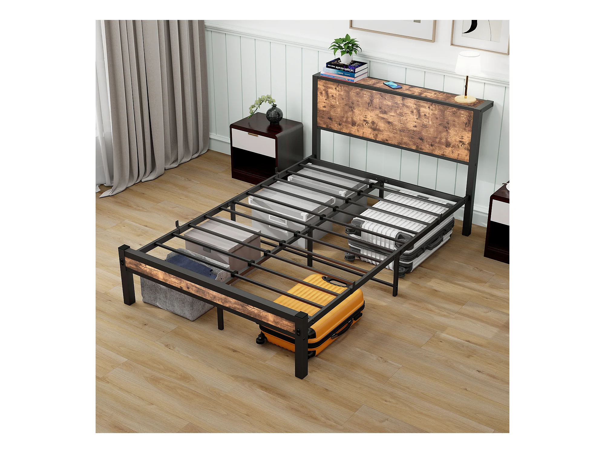 Lit enfant 120x200 cm - Cadre de lit avec tête de lit et rangement sous le lit - marron - sans matelas