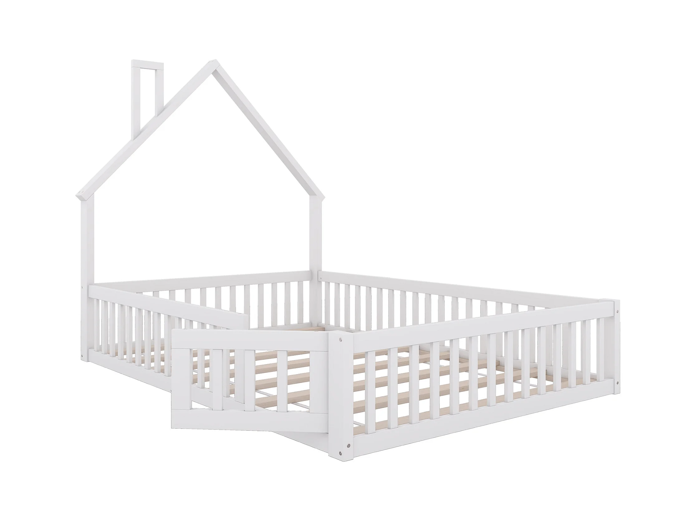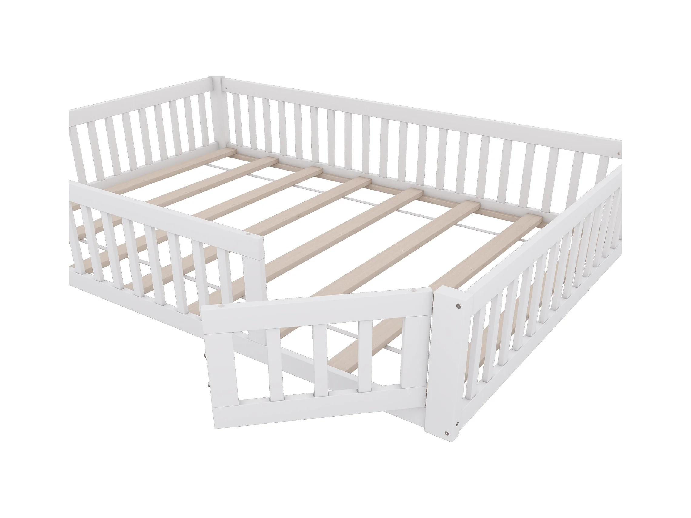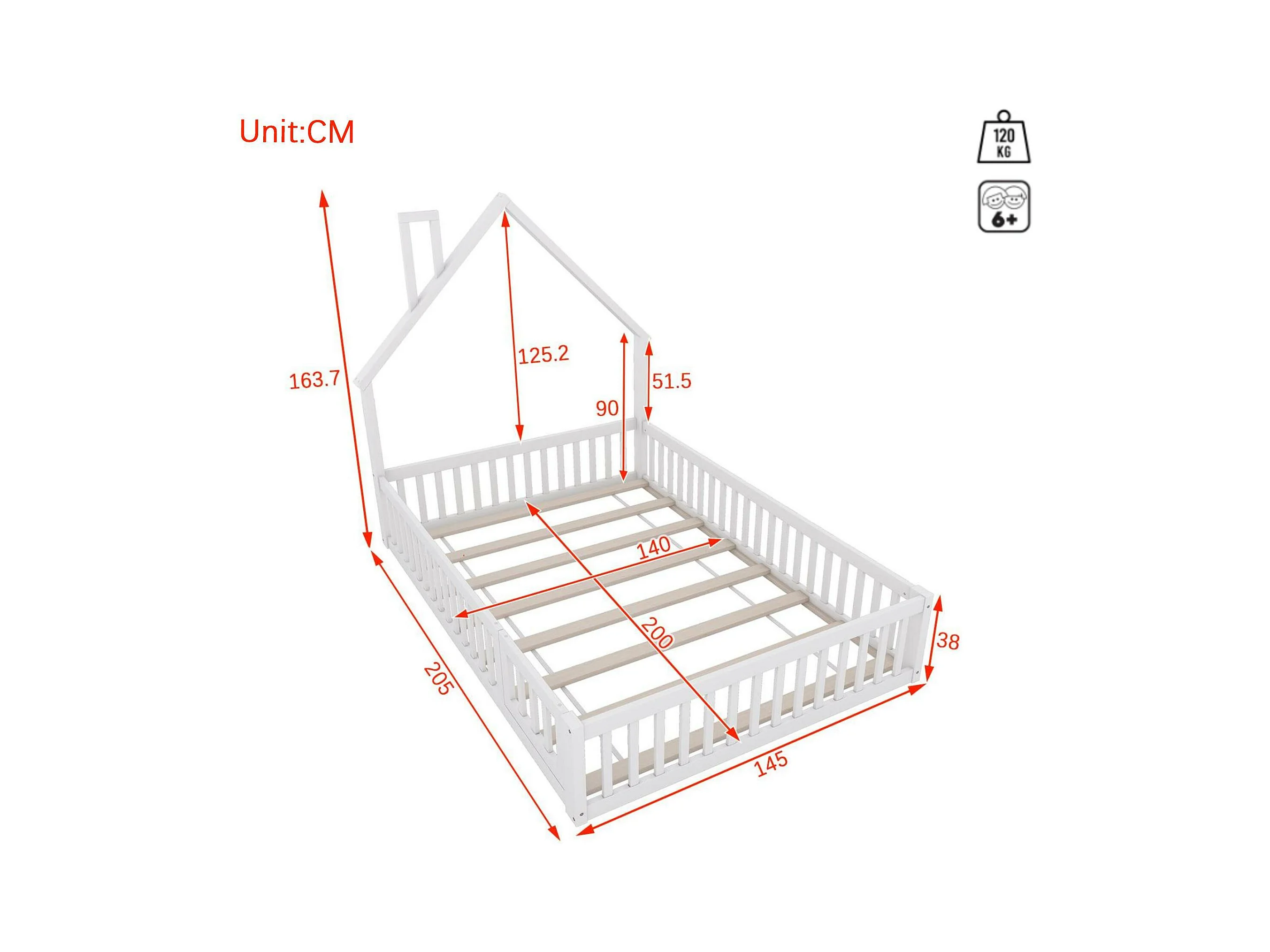 Lit enfant 140x200cm en bois massif - avec sommier à lattes - Blanc
