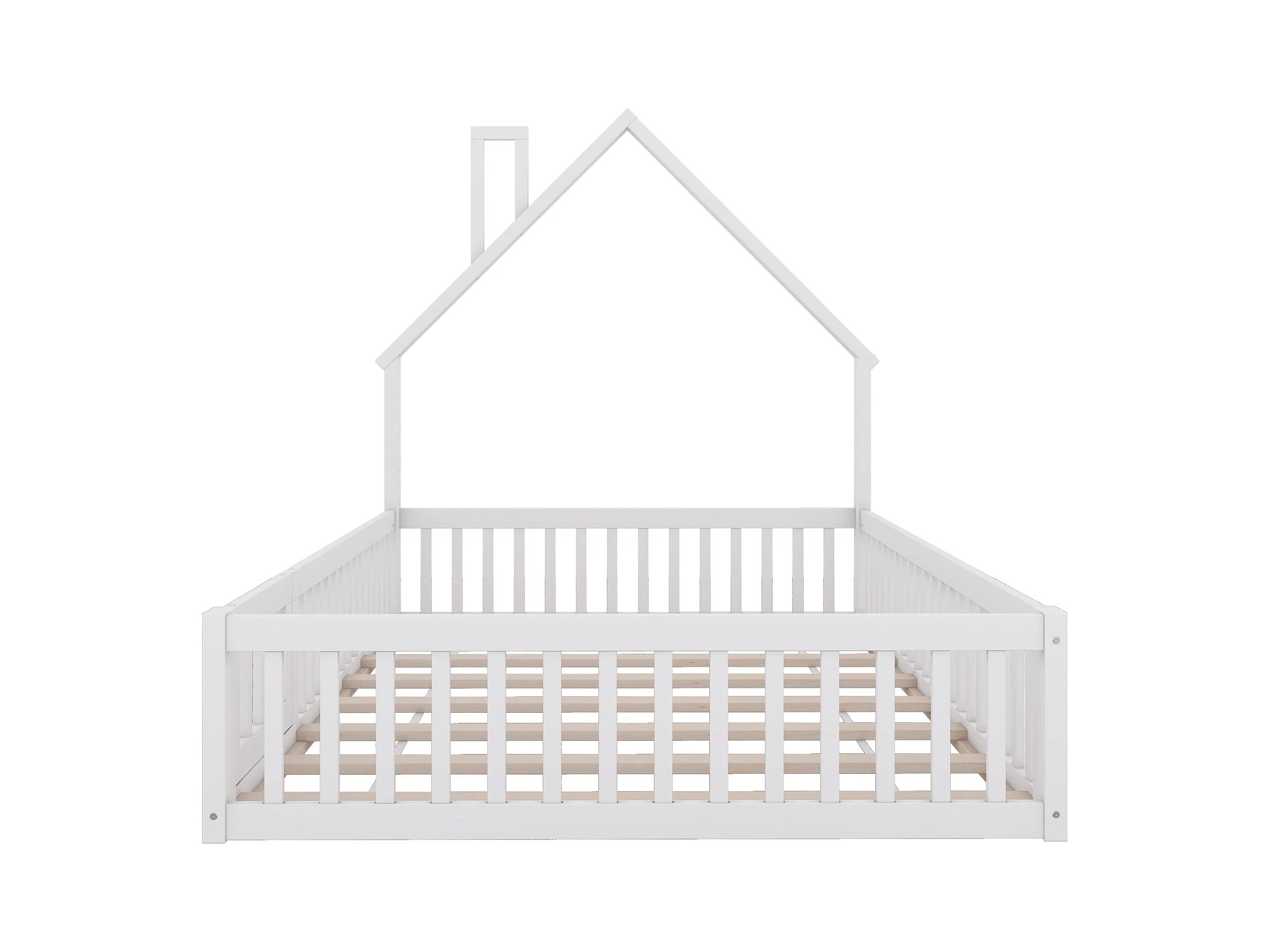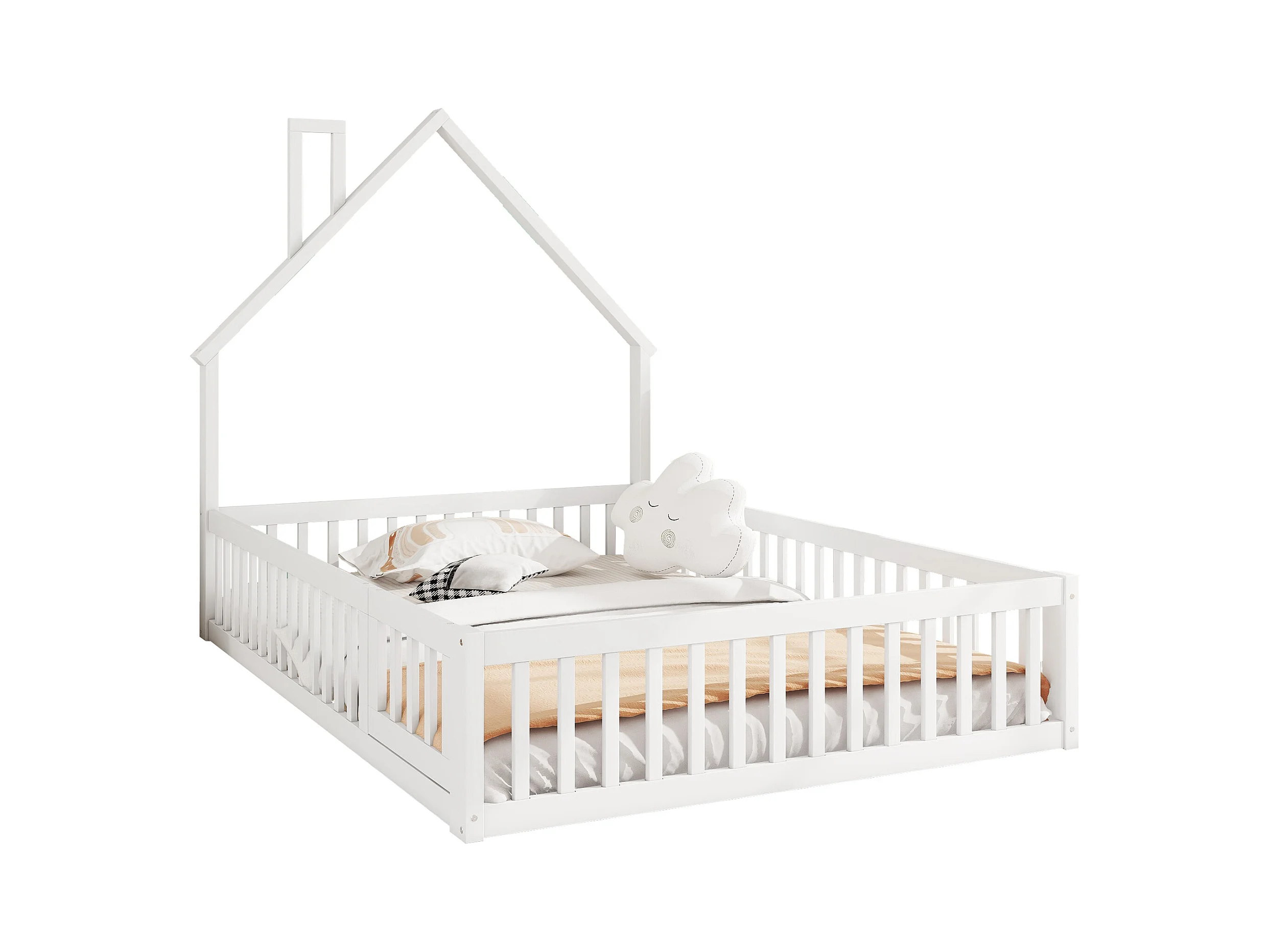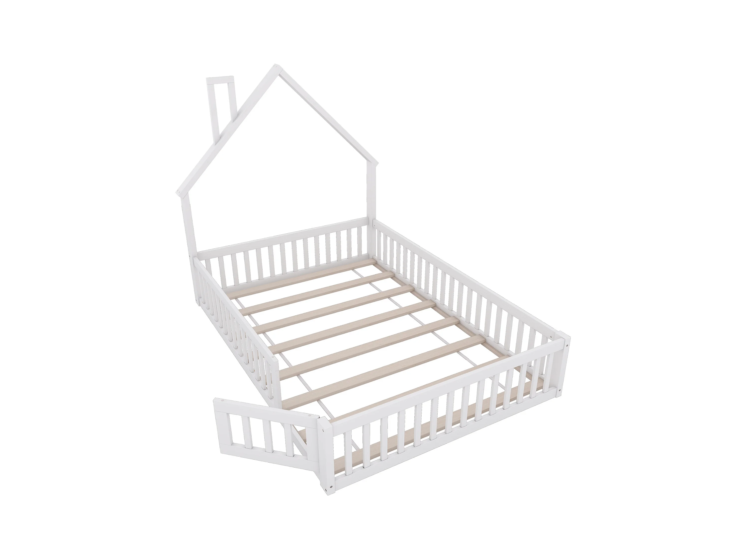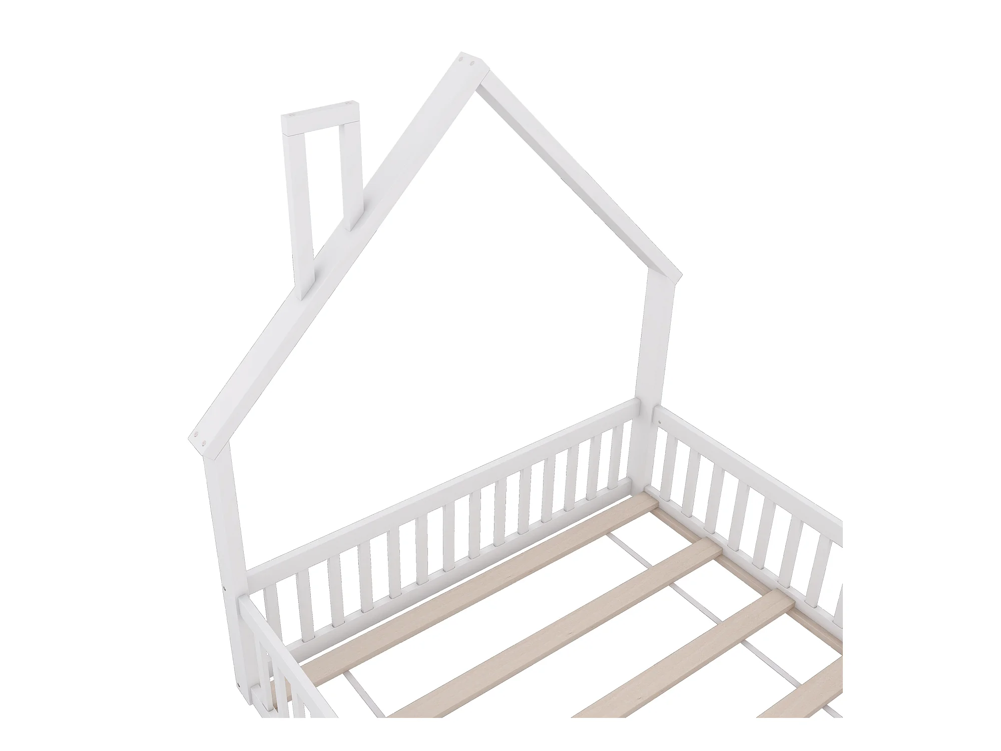Lit enfant 140x200cm en bois massif - avec sommier à lattes - Blanc