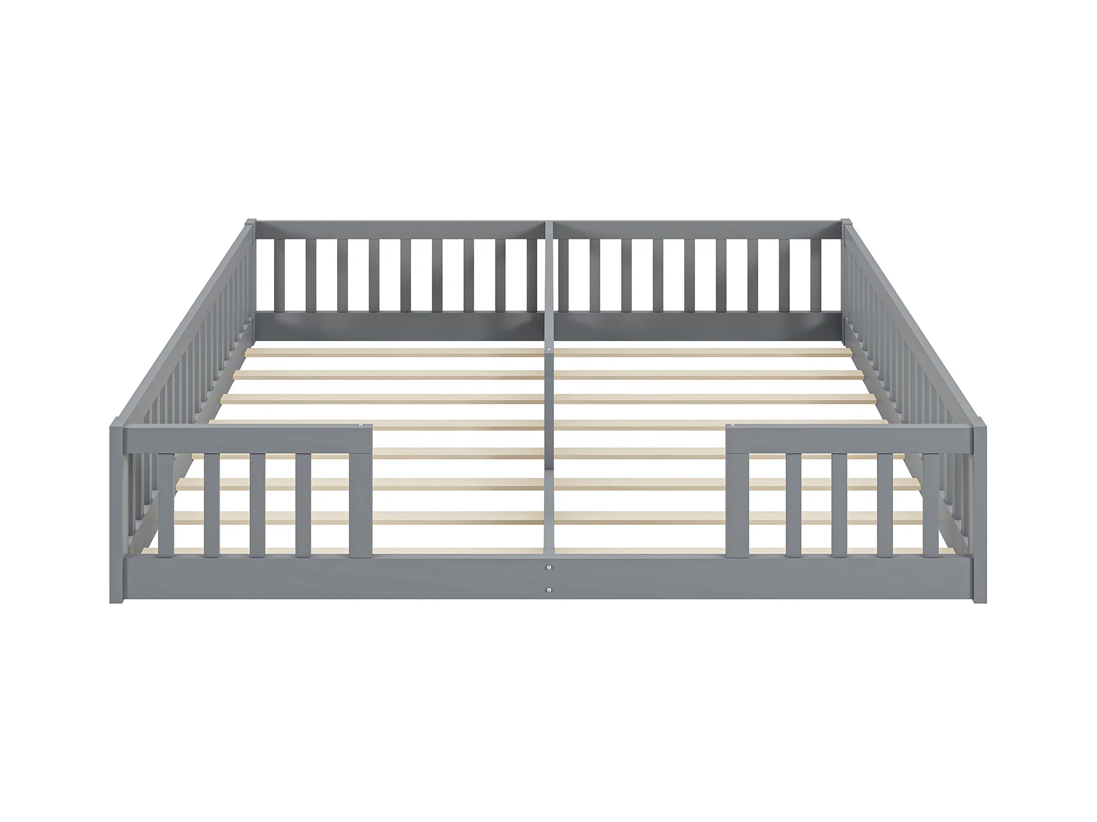 Lit enfant 2x90x200cm en bois massif - avec barrières - avec sommier à lattes - Gris