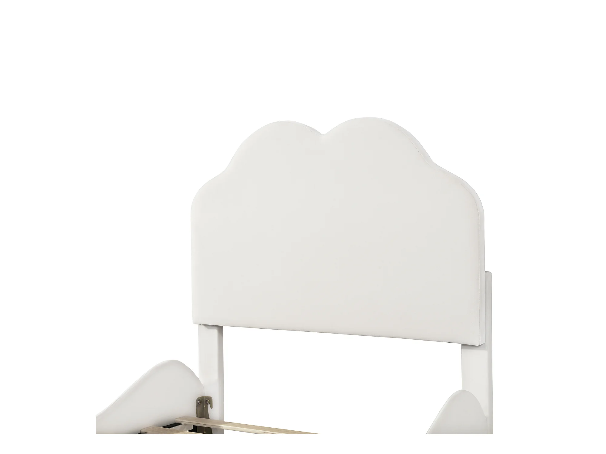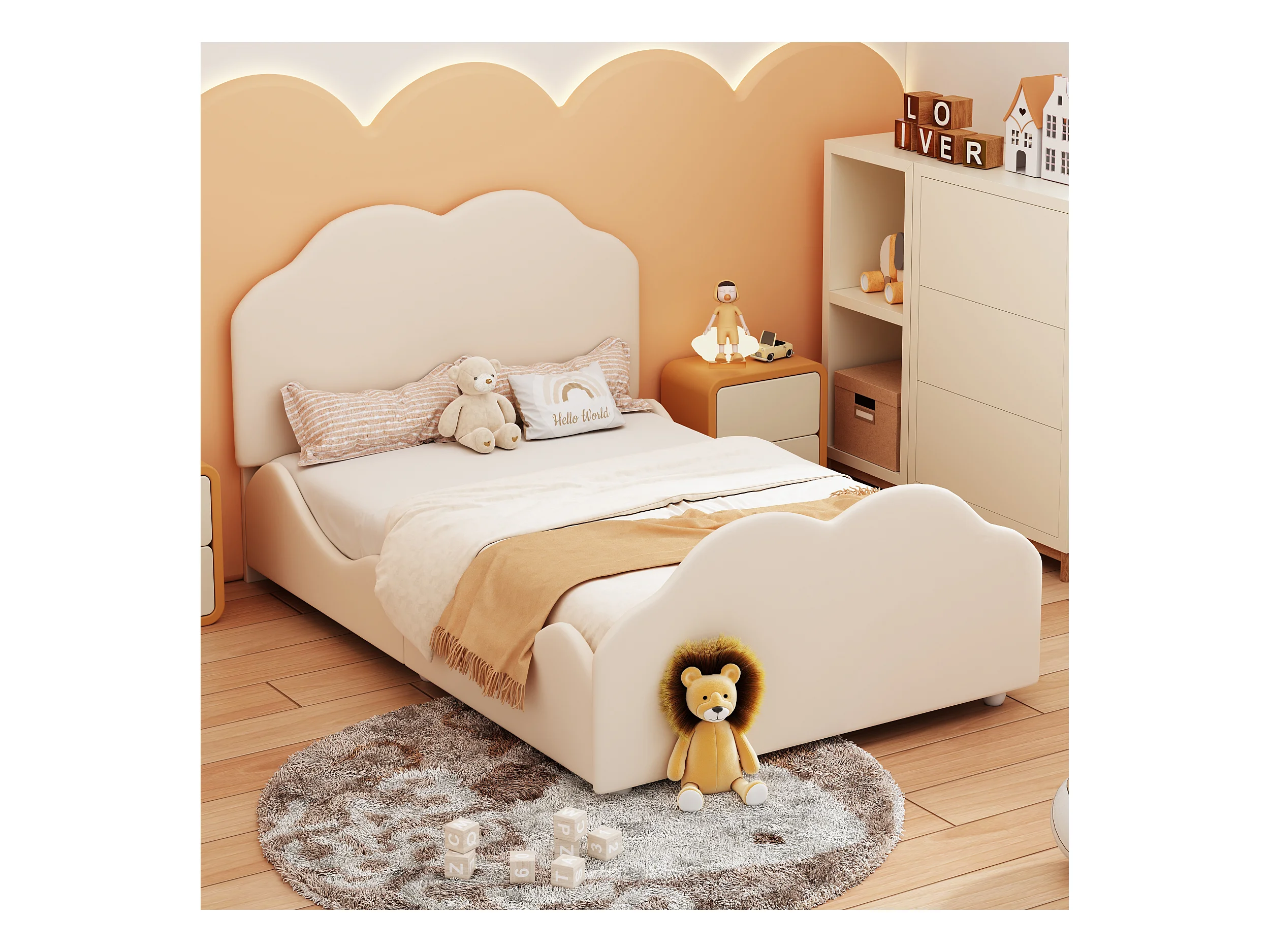 Lit enfant 90 x 200 cm - Lit simple avec tête de lit en forme de nuage et barrières de sécurité - velours beige